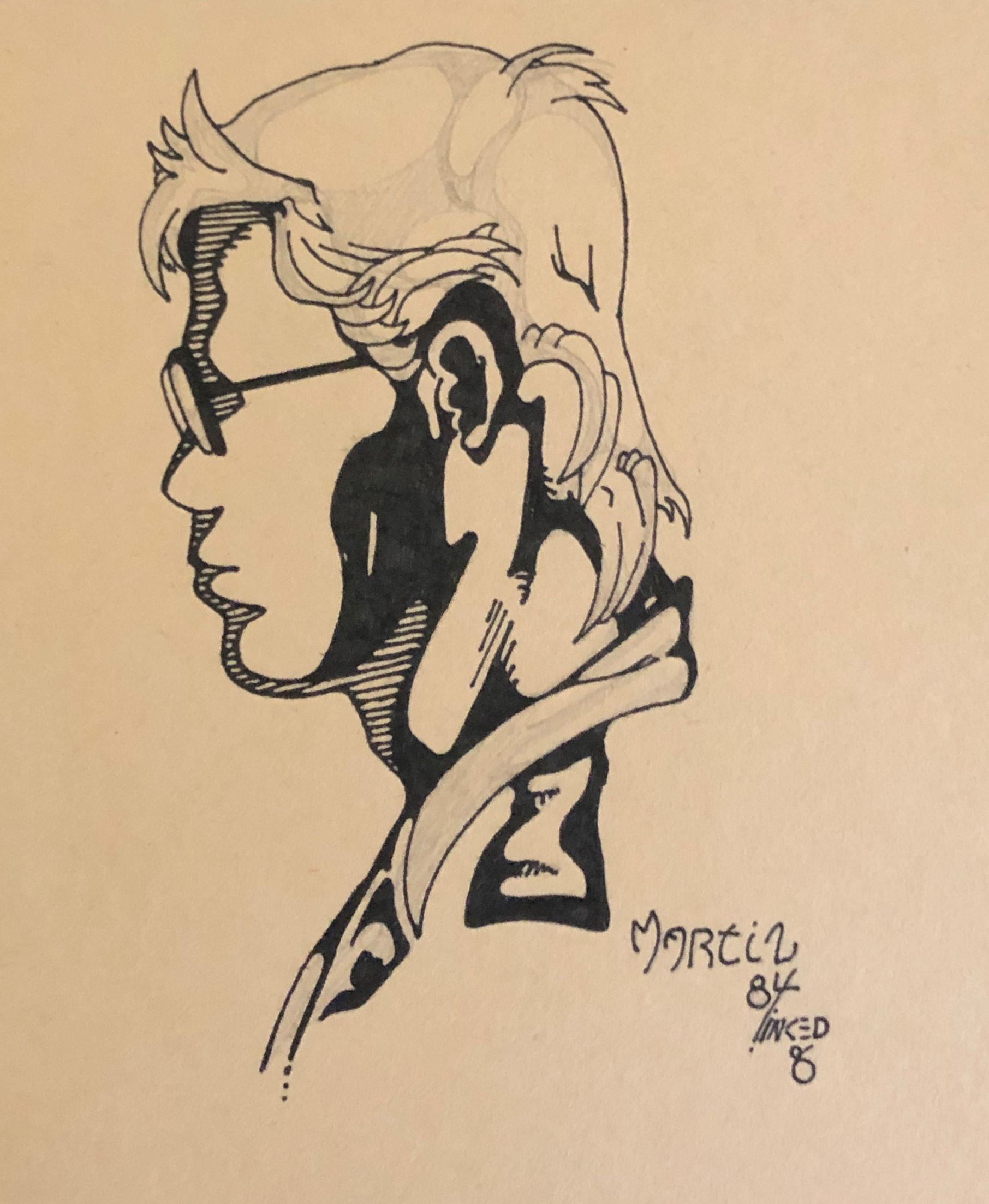 While still in college I often found myself with time on my hands while in class. I was prolific and so was usually done projects early and in need of something else to draw. My classmate Martin became an unsuspecting subject: