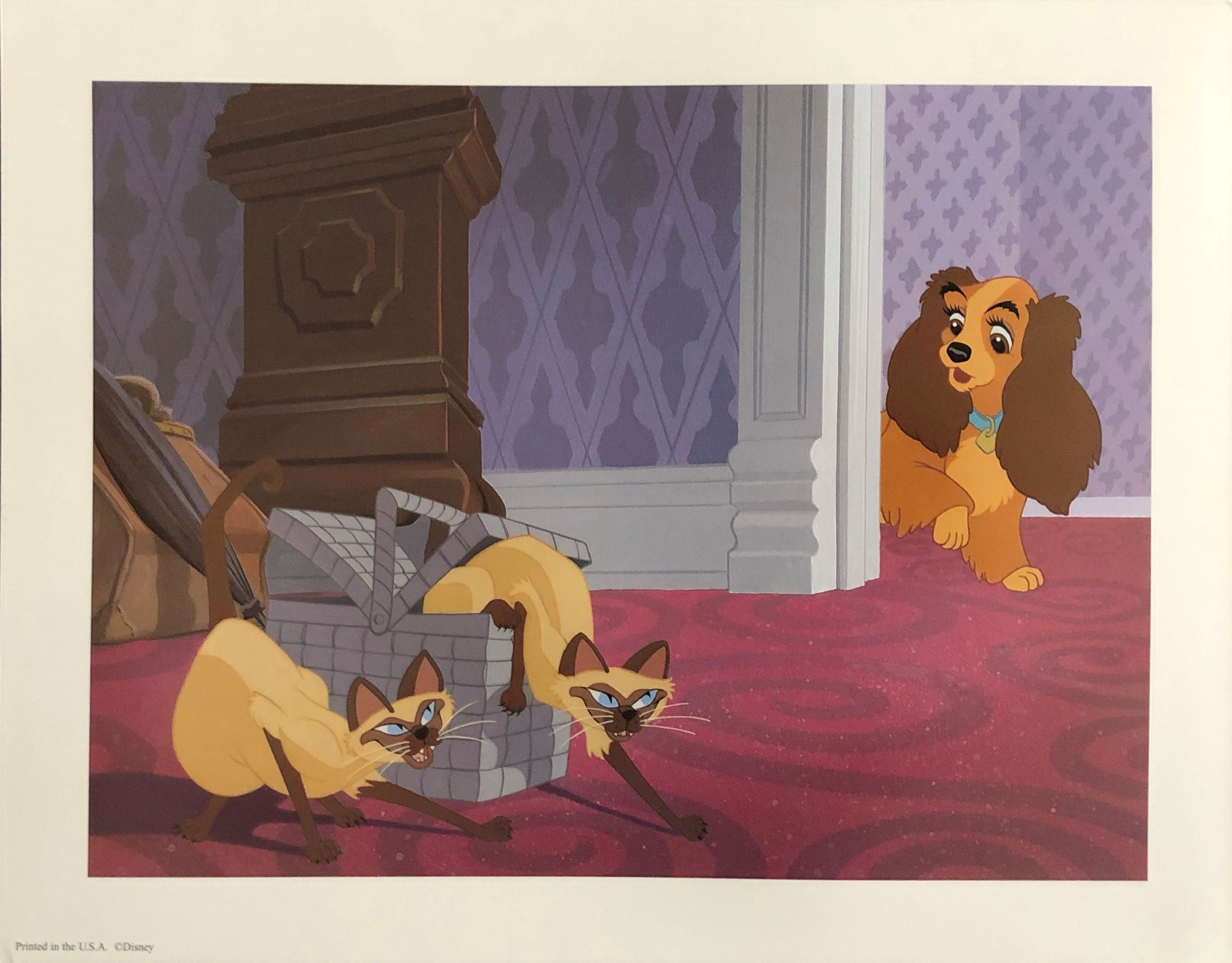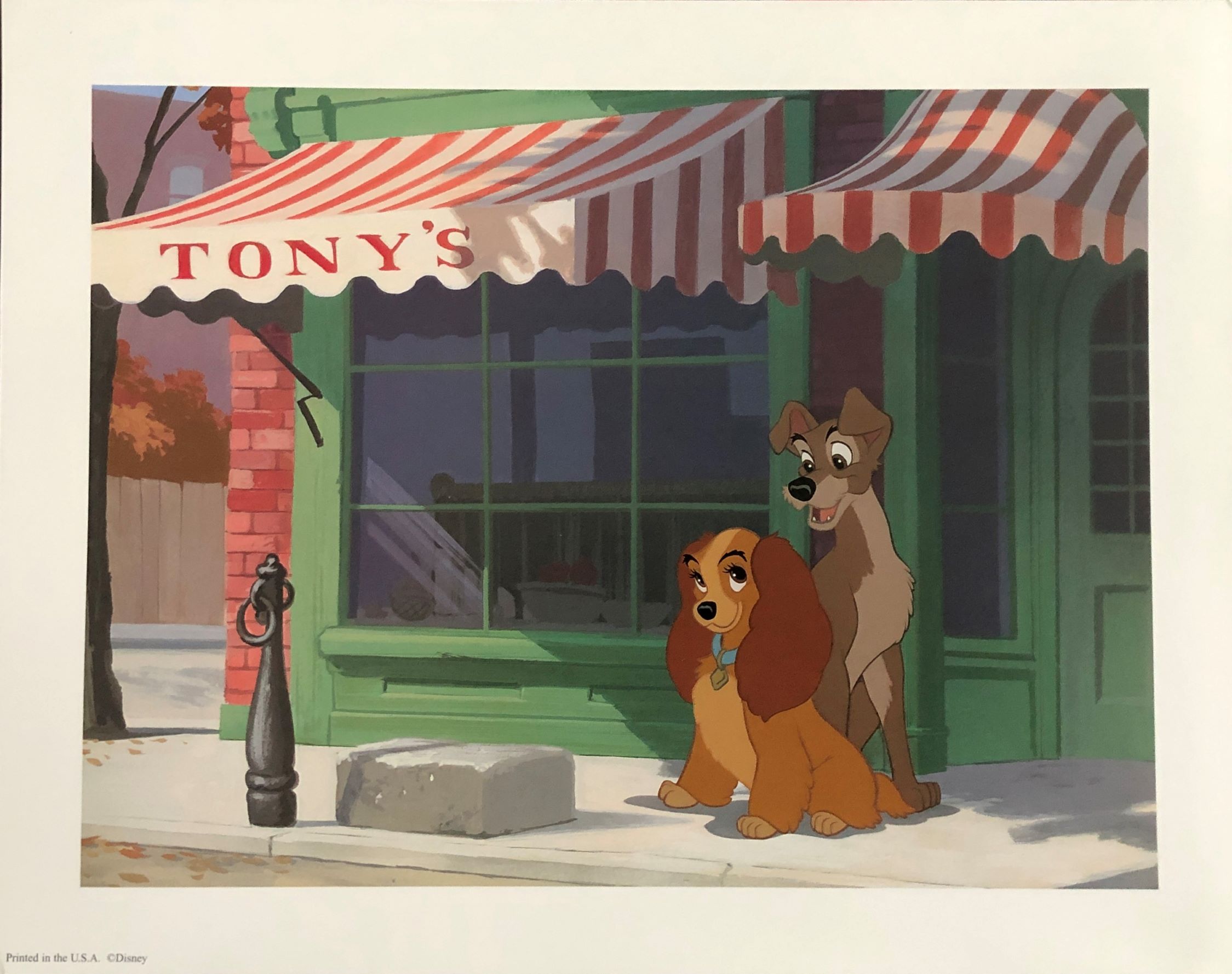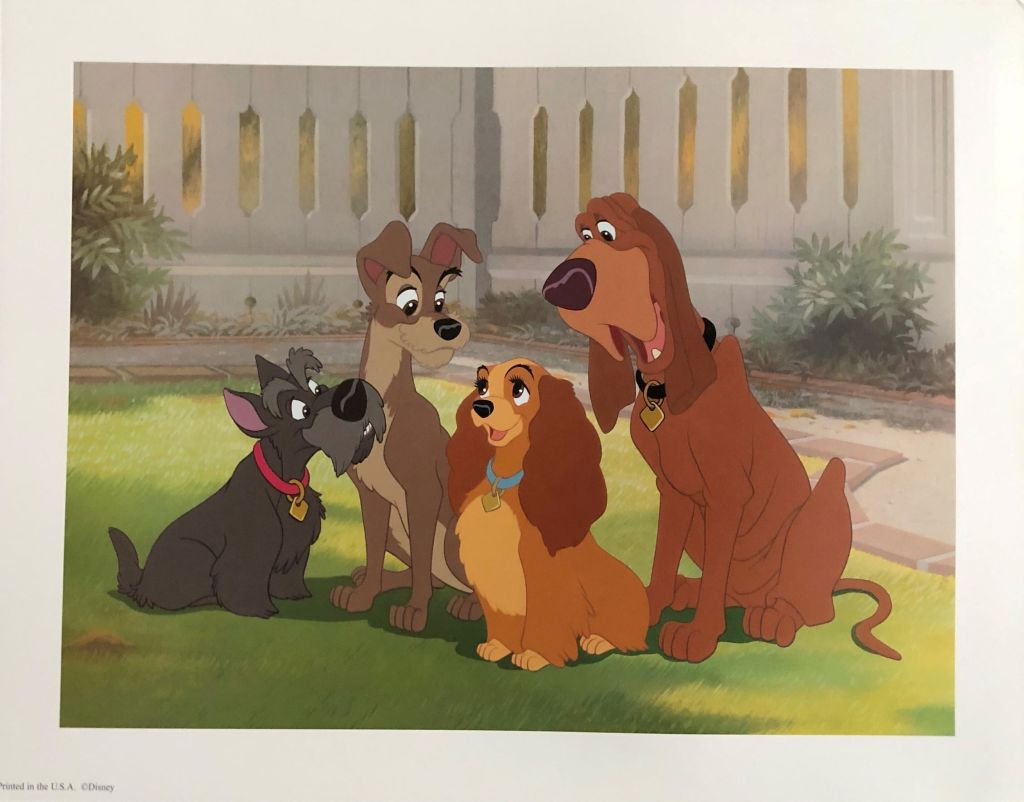 The Disney Store has given away many sets of lithographs over the years to promote the video releases of selected animated classics, such as Lady and the Tramp.