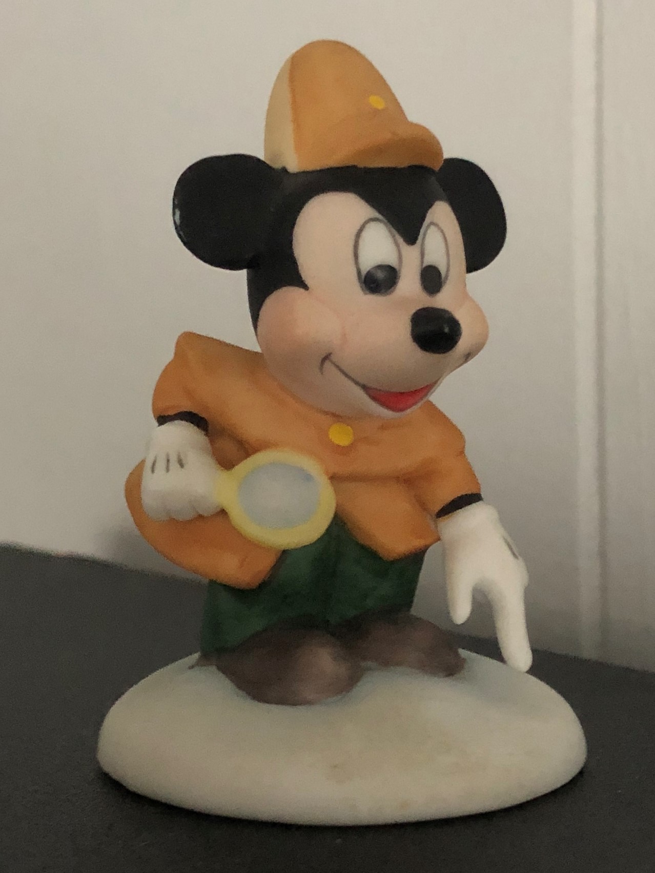 It doesn’t appear that Mickey Mouse ever played a detective in his original series of animated Shorts. But it’s pretty obvious that this figurine was patterned after the subject of our post! Moving on: