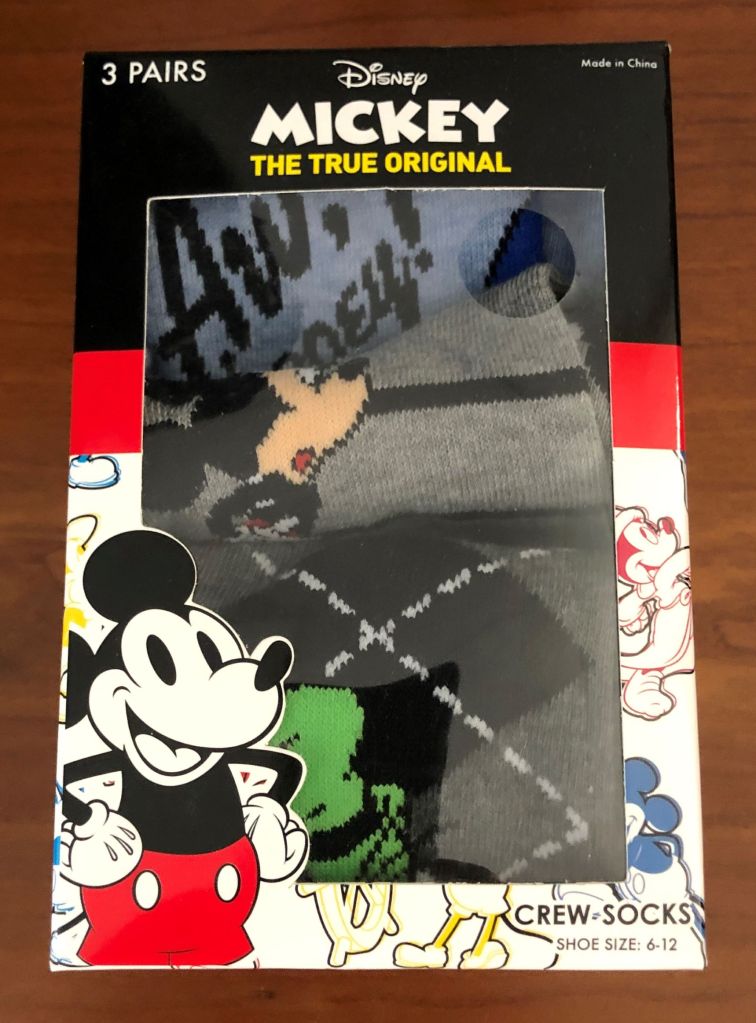 My sister bought me this set of three crew socks some time ago and I’ve only now gotten around to putting a pair of them on. They’re comfortable. In case you were wondering. The material is 97% Polyester and a whopping 3% Spandex.