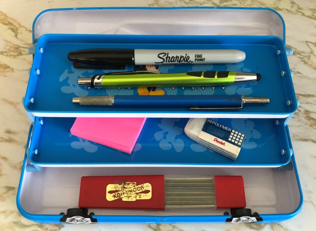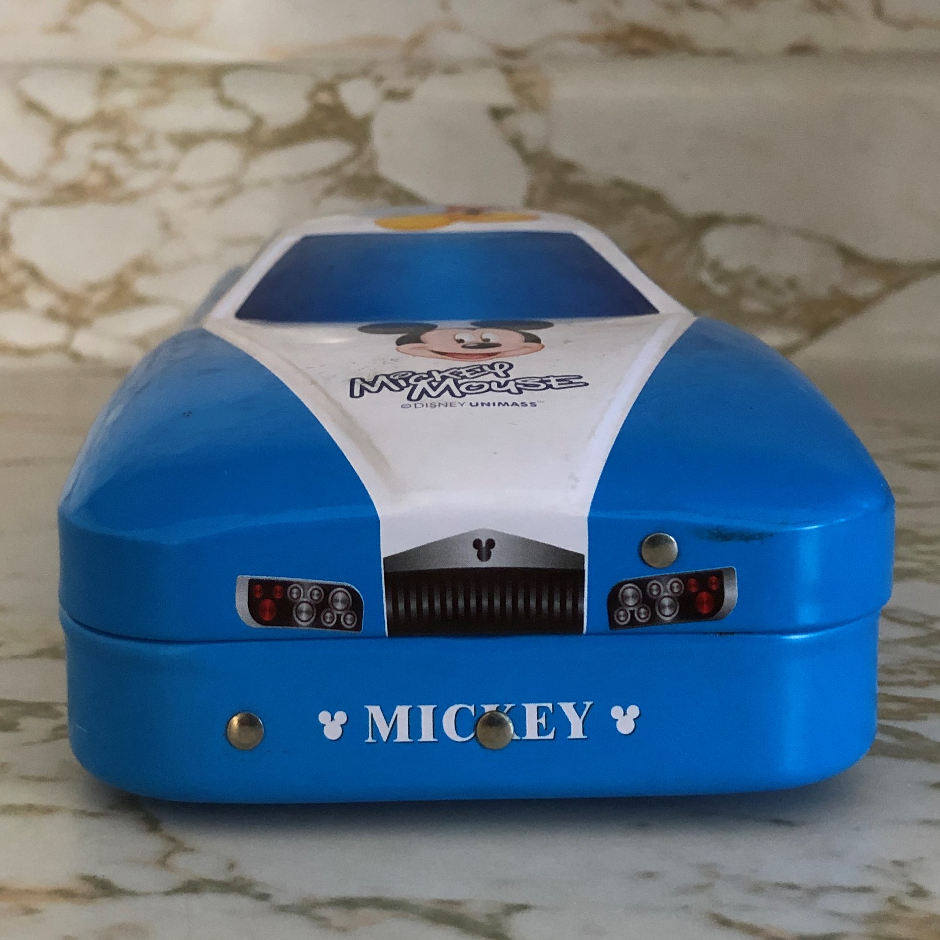 This is an unusual item. It can be used as a toy because it has small wheels on the bottom of the tin making it possible to roll it around like a car. But you can also open it and use it for its intended purpose: A Pencil Case. I guess that’s one way to sneak a toy into class!