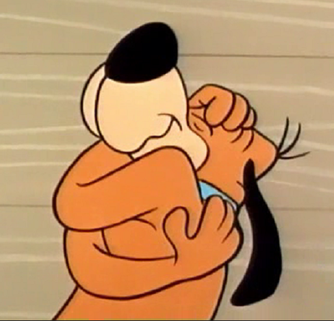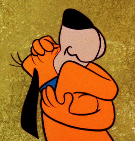 The satisfied faces of Goofy and Max remind me of a Hanna Barbara character named Snuffles. Snuffles is a bloodhound used by Quick Draw McGraw to ferret out bad guys in the old West. The only catch is that he needs to be bribed with a dog biscuit before performing his task. Upon chomping on one, he hugs himself in ecstasy, jumps into the air and floats back down, sighing.
