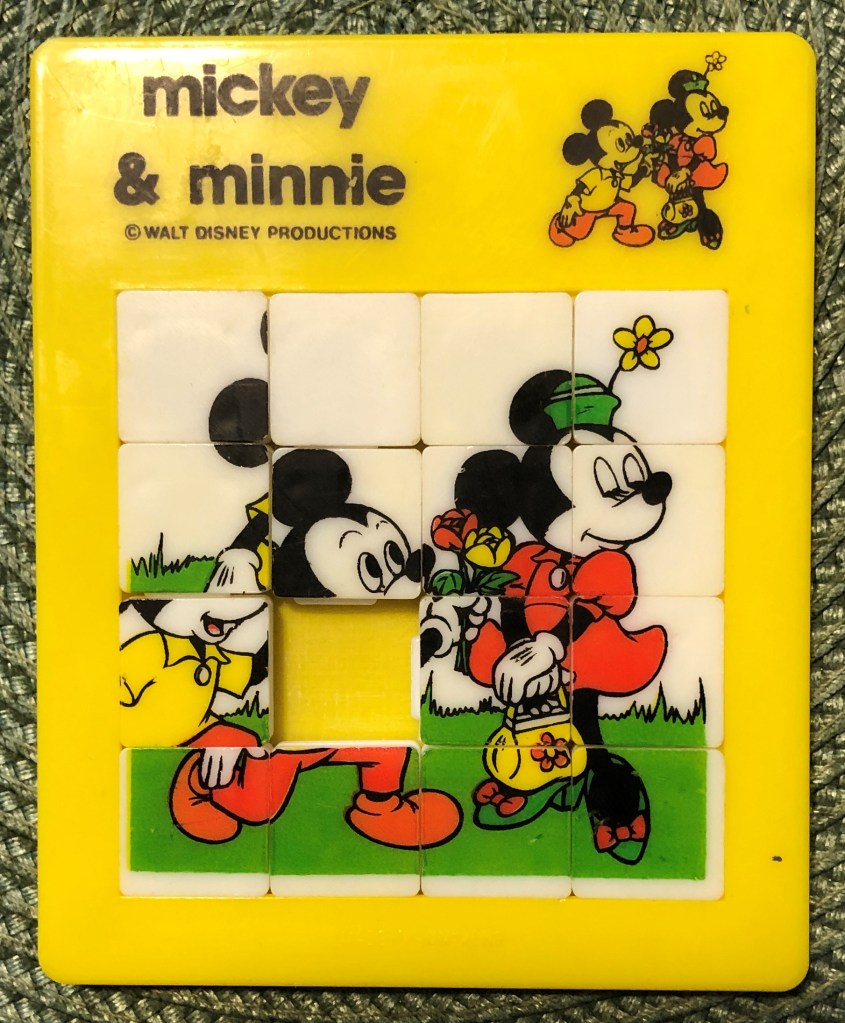 Is it a just a puzzle, or a toy too? Maybe only your child can say for sure! This cute little plaything is a mystery. I can find no maker stamps or year of production for it other than the Walt Disney Productions copyright. This copyright was used from 1929 up to 1986. So this unique Slider Puzzle is no newer than the mid-1980’s.