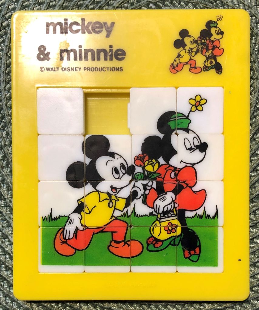 To see a more traditional Disney-themed puzzle, mint in the box, and featuring Mickey and Minnie (and Donald with Daisy) at Walt Disney World, check out this Vintage Jigsaw Puzzle by Whitman.