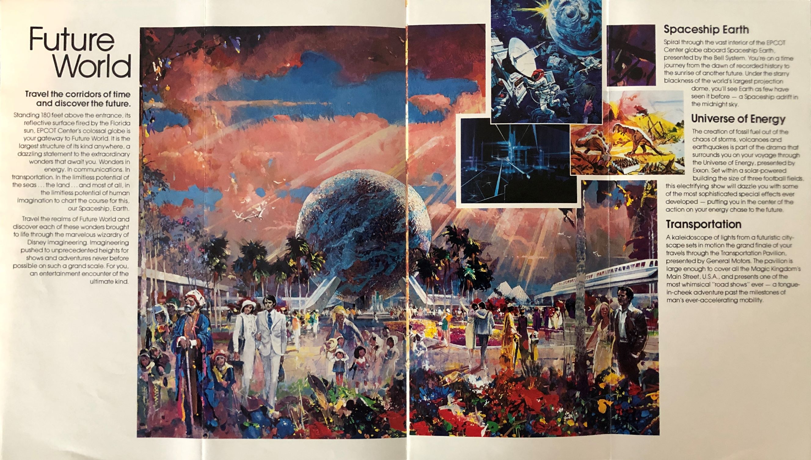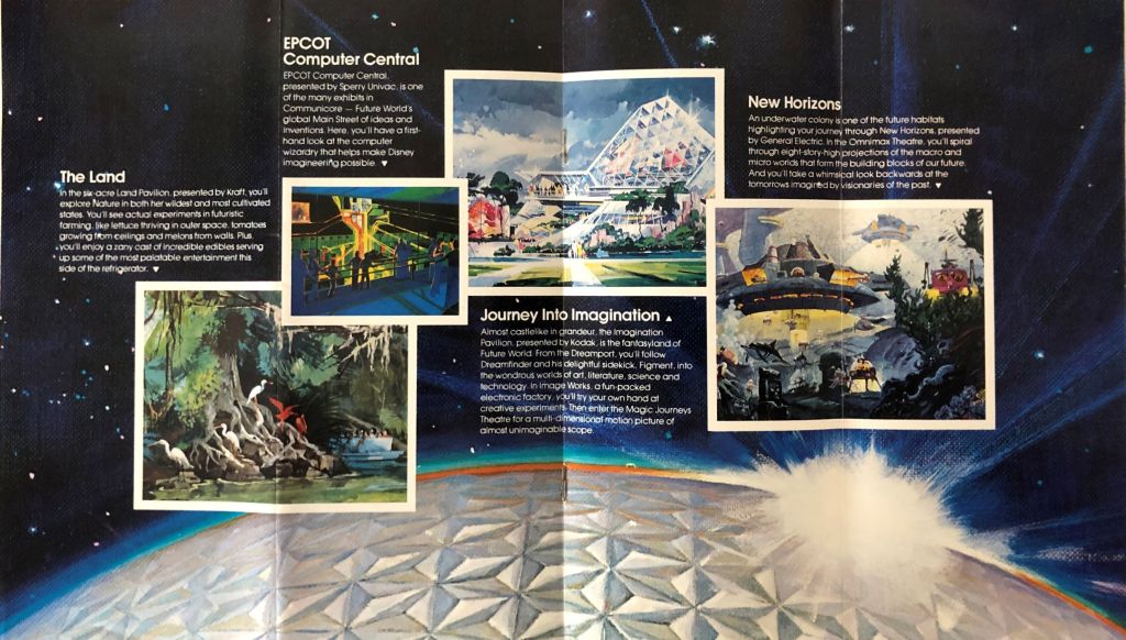 As of 2020, much of the buildings pictured in the image above are gone. EPCOT is undergoing a major overhaul with significant retheming. So this pamphlet should be a nice piece of nostalgia for fans of the original EPCOT Center!