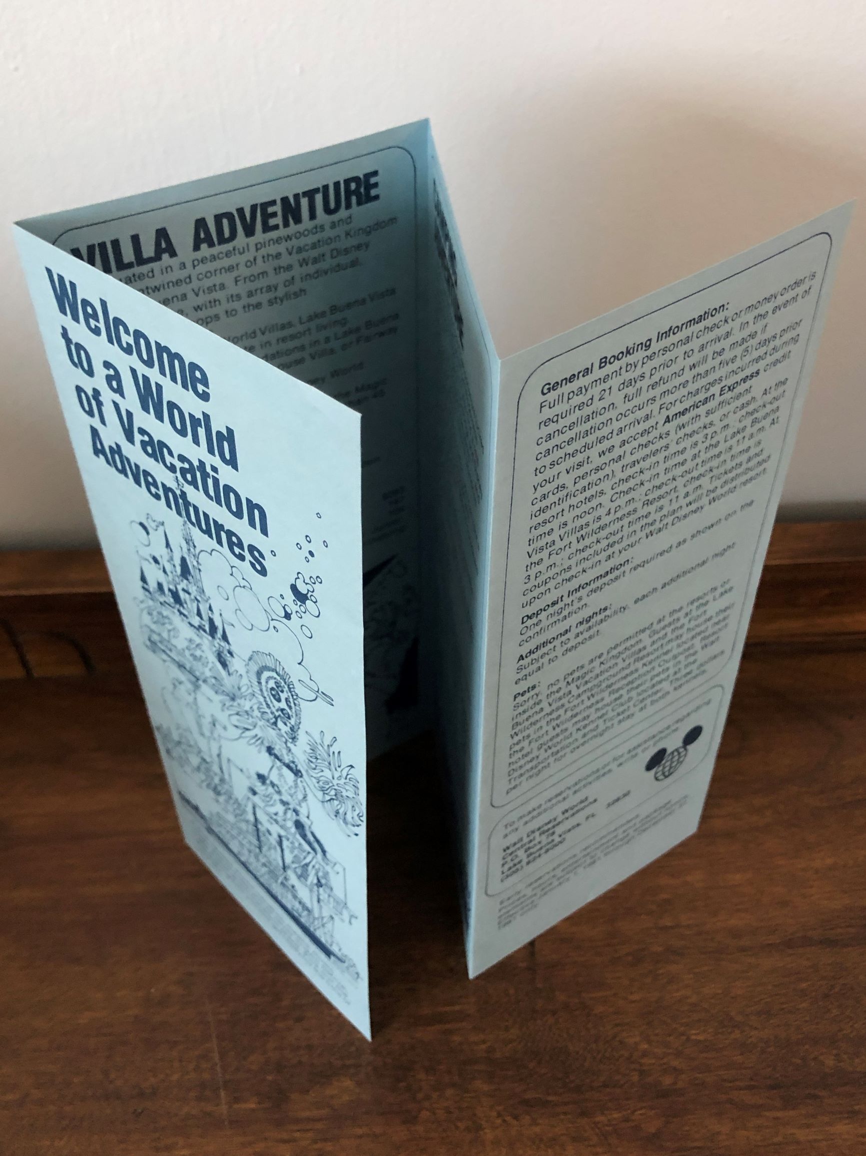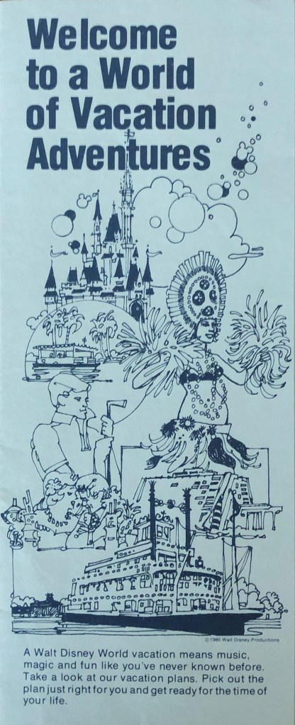 Instead of just buying a one or two day ticket to an individual Park, this pamphlet was designed to sell potential Walt Disney World guests a complete vacation package, or ‘adventure’.