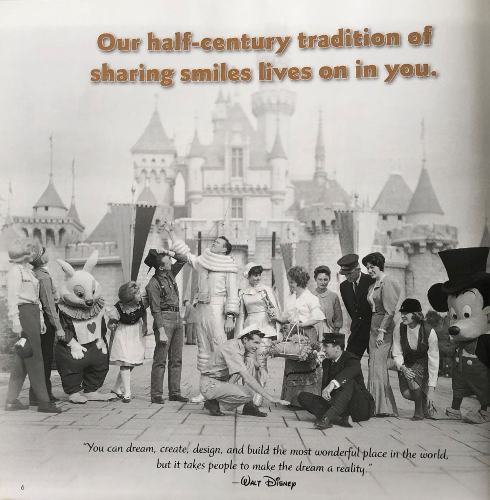 Disney Editions published this special keepsake for the Class of 1955-2005. It’s obvious that Disneyland Cast Members would have gotten one, but according to the overleaf in the book itself, it was ‘an internal communications vehicle for the exclusive use of employees of Walt Disney Parks and Resorts’. Even affiliates, successors, and assignees were included. So it appears that not just Disneyland staff got the keepsake.