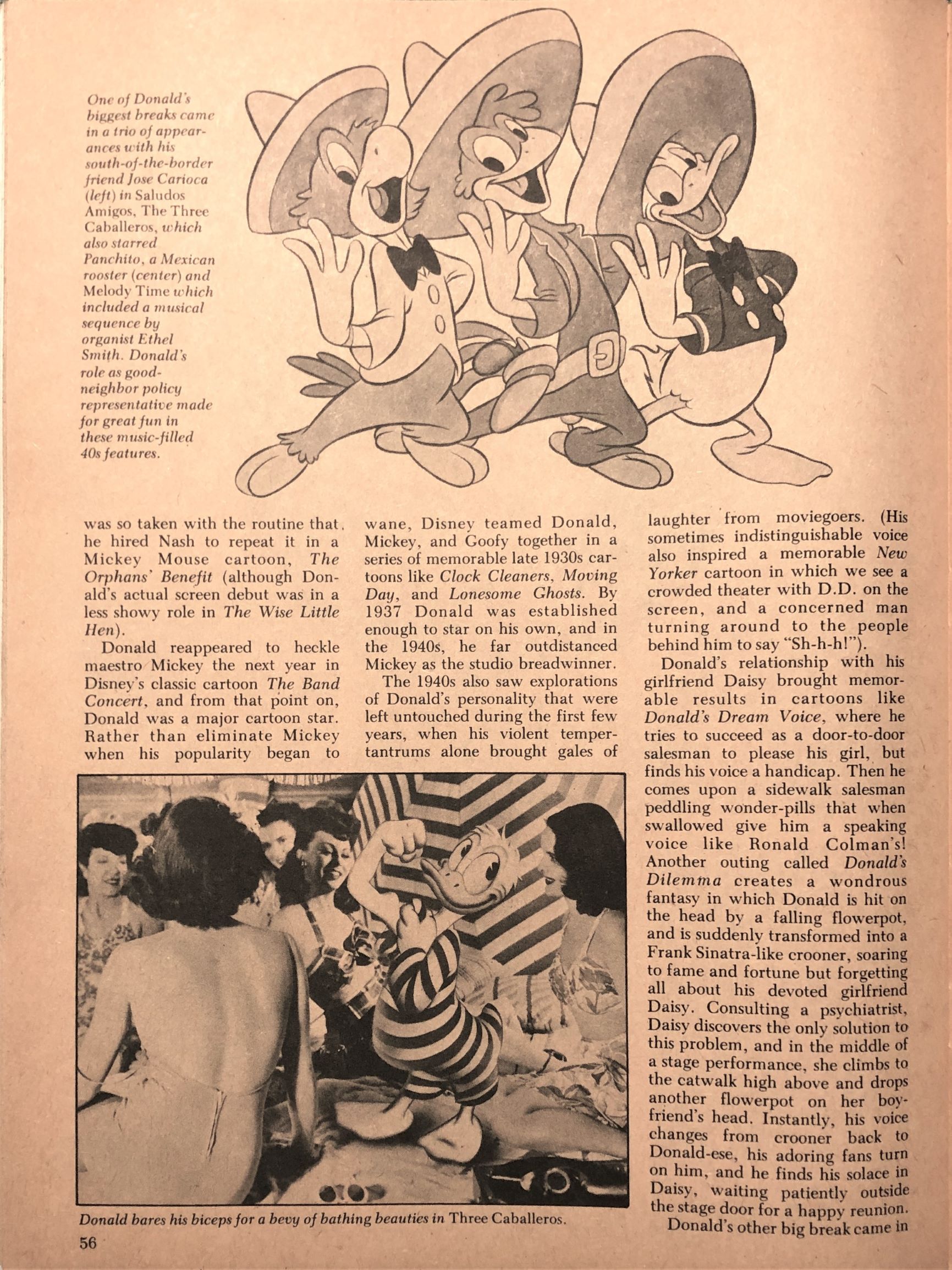 Donald Duck: It may have all started with a Mouse, but it pretty much finished up with a Duck. Yes, Donald far outdid Mickey in both fan base and prolificity. Maltin mentions that it was his temper that put Donald over the top with audiences and Walt Disney had a new money maker!