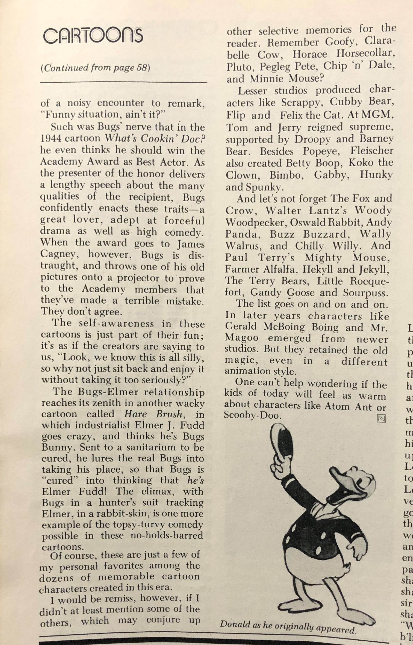 Being as Nostalgia Illustrated has the word ‘nostalgia’ in the title, it probably shouldn’t surprise us that Mr. Maltin was tapped to provide an article! The article in question is entitled, as previously mentioned: Four Favorite Cartoons. For some reason, most of the images are out of sequence with the text of the story. Oh well. Editing is such a lost art!
