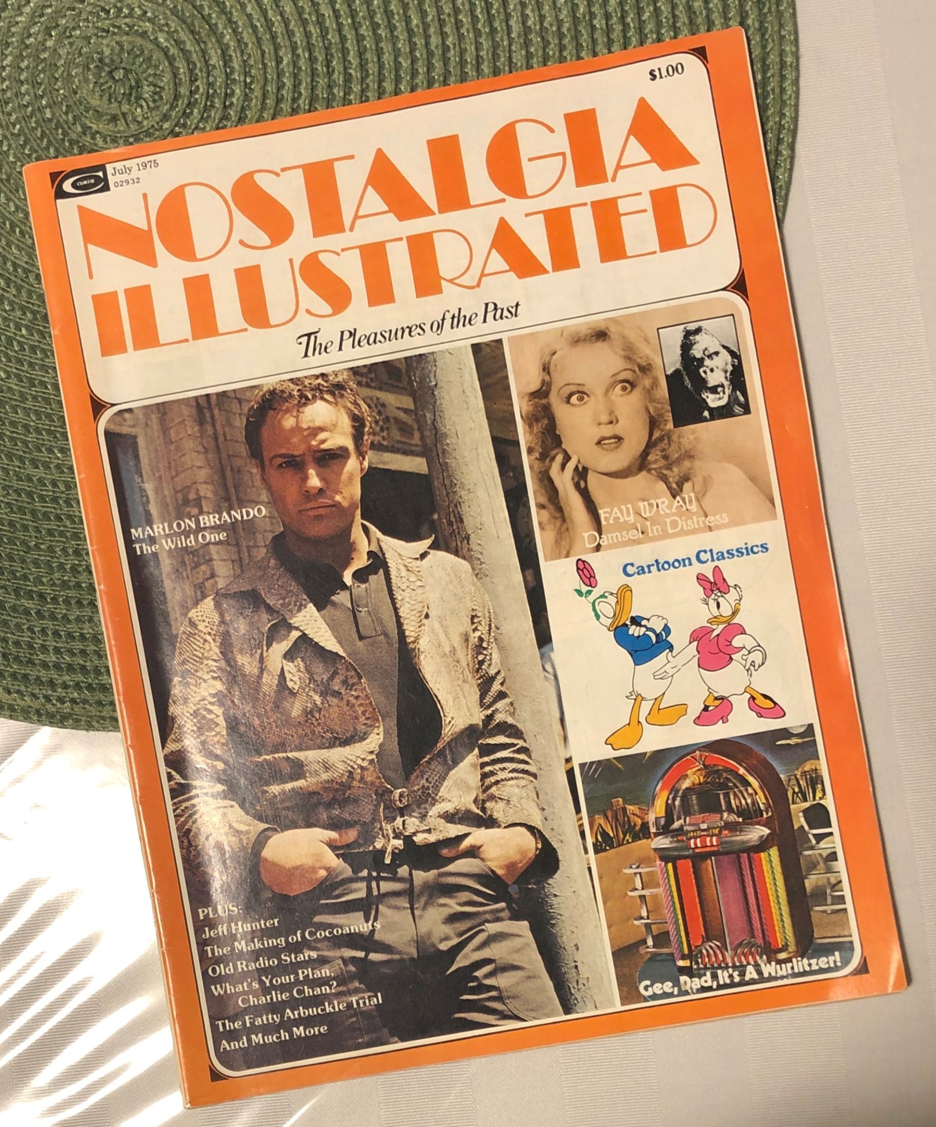 I’ve set the Wayback Machine to 1975 on a sweltering July day. It’s time to explore some of The Pleasures of the Past via the esteemed Nostalgia Illustrated magazine! Who’s ready for some dog-eared, yellowing, smelly fun?