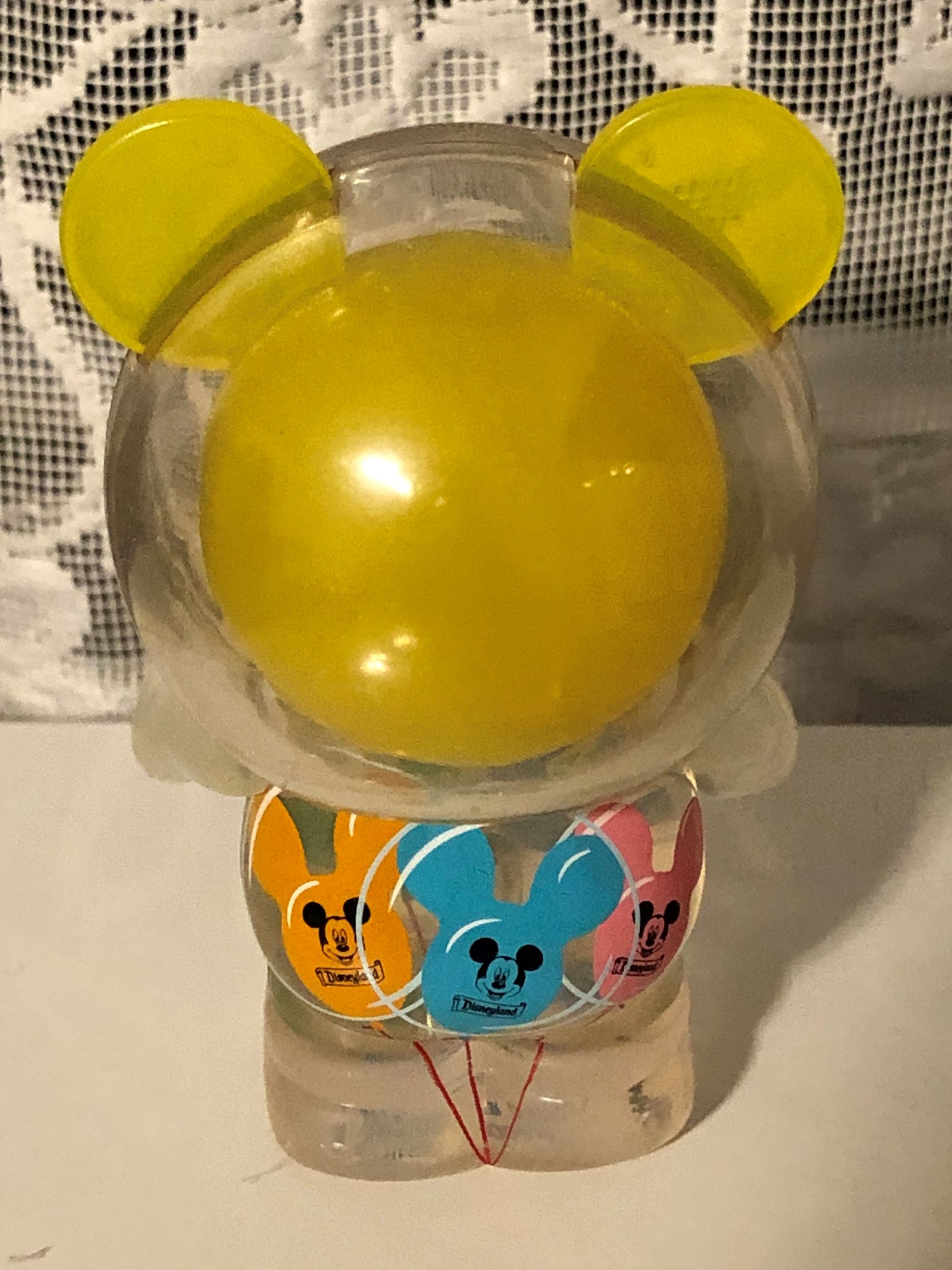 Now let’s talk balloons! The Mickey Balloon is one of the most iconic Disneyland mementos. Our figurine is patterned off of the yellow version, as you can see by comparing it to the image, above right. There is a slight variation to the shaping due to the necessary usage of the Vinylmation shape.