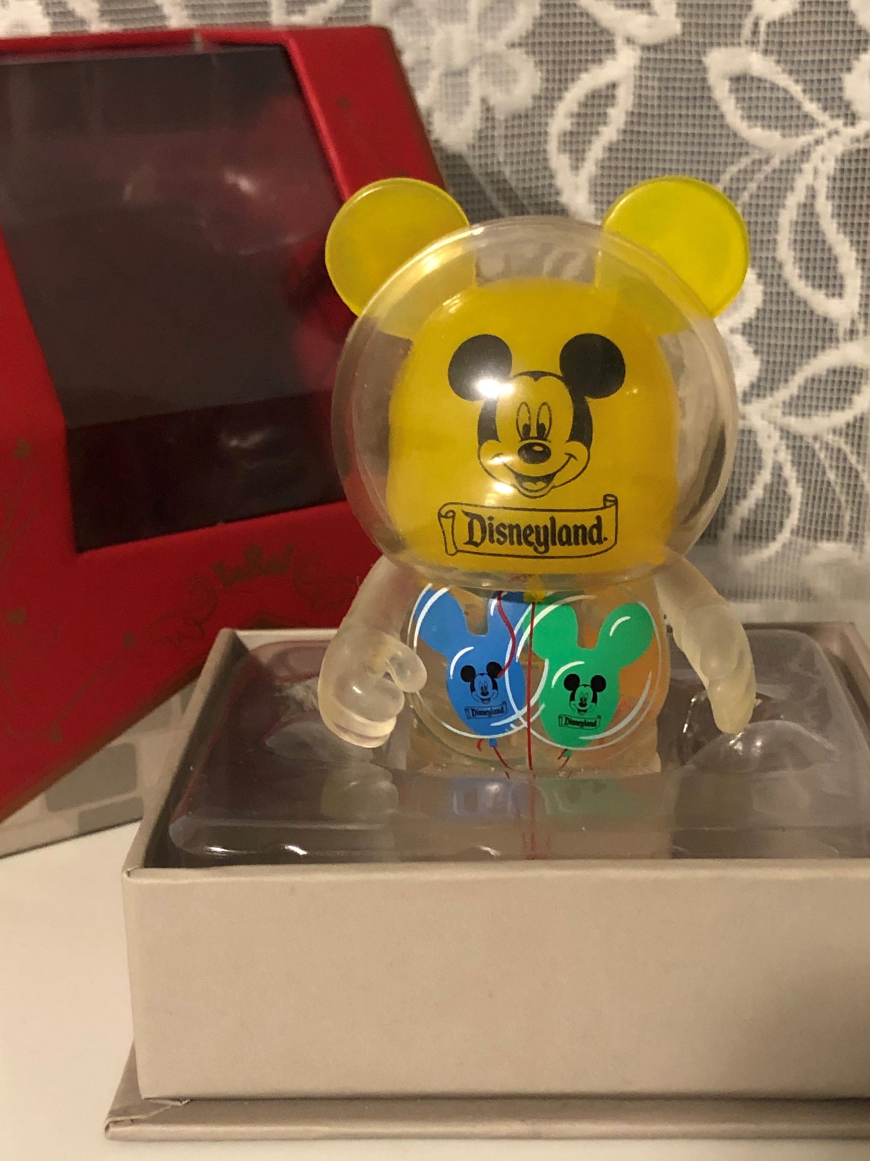 Now let’s talk balloons! The Mickey Balloon is one of the most iconic Disneyland mementos. Our figurine is patterned off of the yellow version, as you can see by comparing it to the image, above right. There is a slight variation to the shaping due to the necessary usage of the Vinylmation shape.