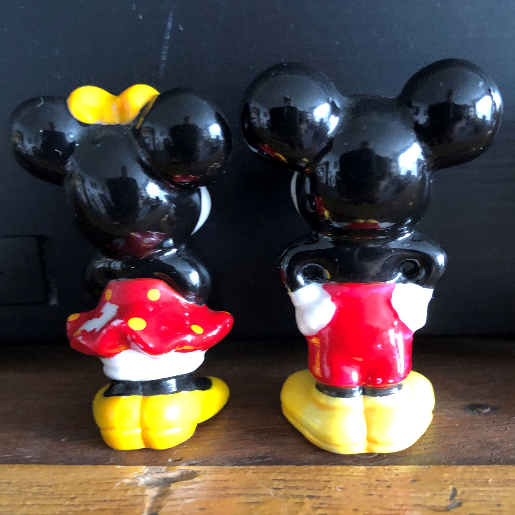 These miniature figurines show some minor paint wear. The animation style of the sculpts is reminiscent of the 1940s or 1950s but I can’t say for sure if they date from either of those eras.