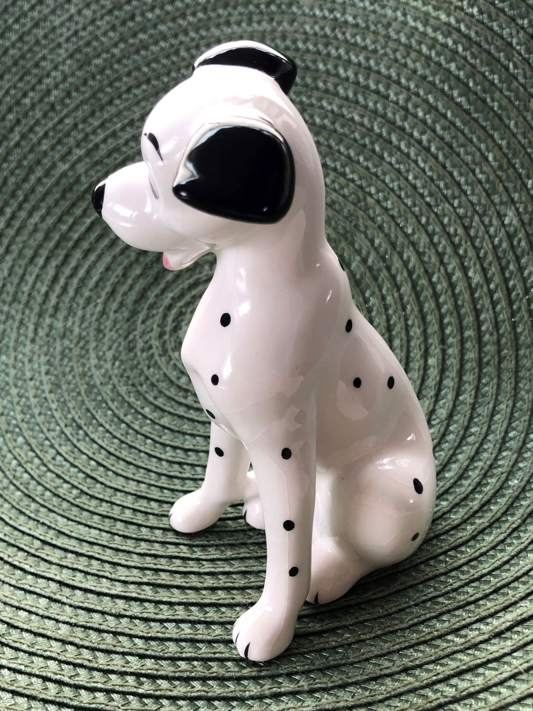 This figurine stands about 5″ tall. He appears to have about 50 spots, whereas his animated doppelganger is said to have 72 spots. You may also notice that he does not have a collar. In the Disney animated movie Pongo wears a red collar, but has been seen with a blue collar in later appearances and sequels.