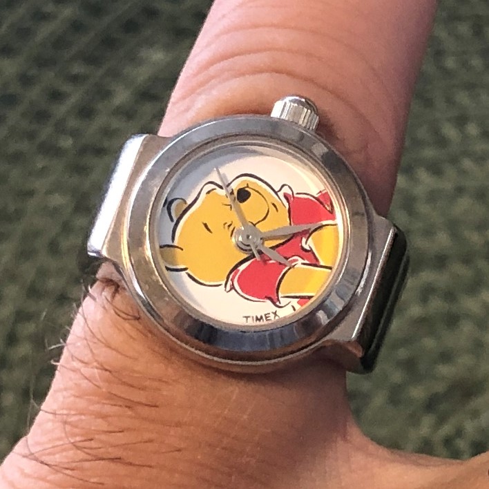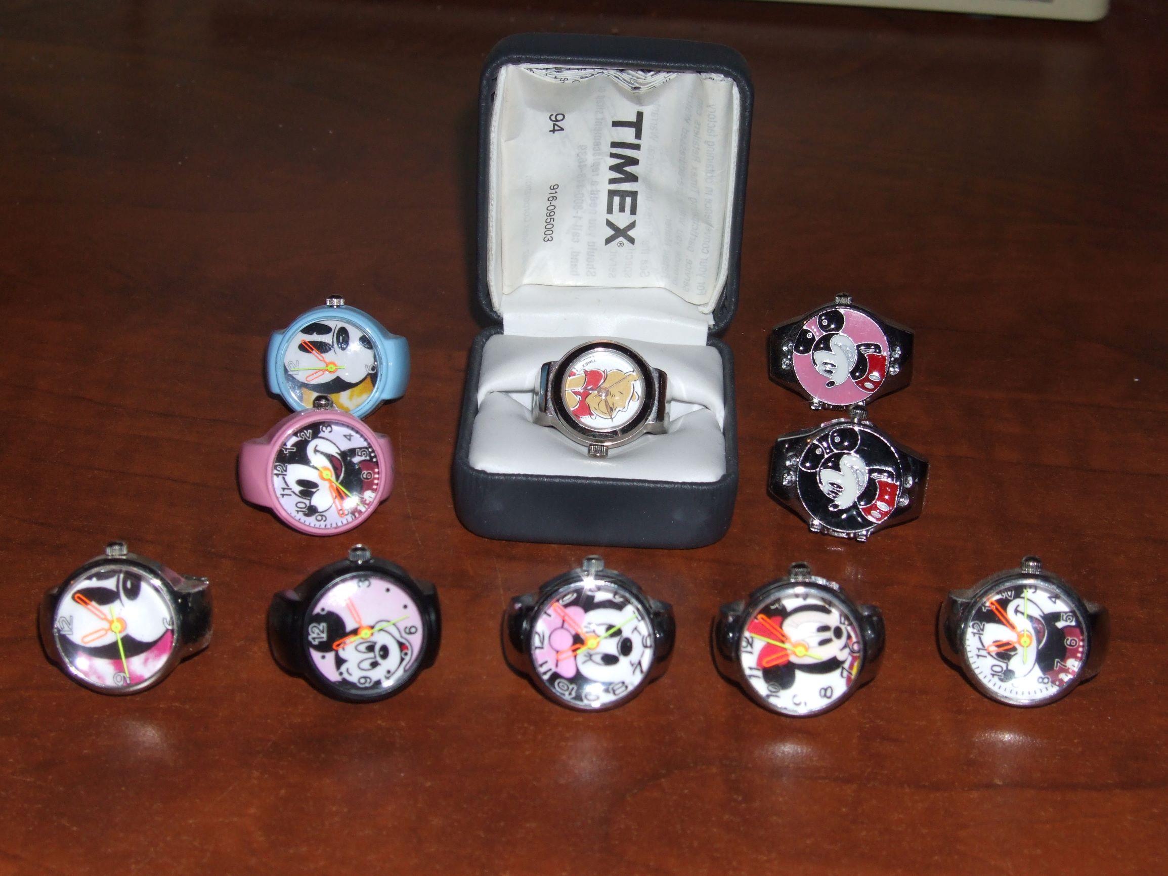 If you’re interested in the history of the TIMEX watch company, you can click the link and visit the ‘Our Story and History’ section of their website. It’s very interesting! And if you’d like to see more Disney-themed finger watches, you can check out my Disney Rings post, which features this image of the finger watch in this post surrounded by nine Chinese knock-offs: