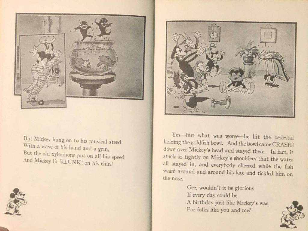 As noted in the opening comments, there is a connection between this book and the Hot Dog dance. Look at the little figures of Mickey and Minnie in the lower corners of the pages above. They are dancing. They also appear on multiple pages making for a little flip-book action. And when you flip through the pages, Mickey and Minnie do… the Hot Dog dance!