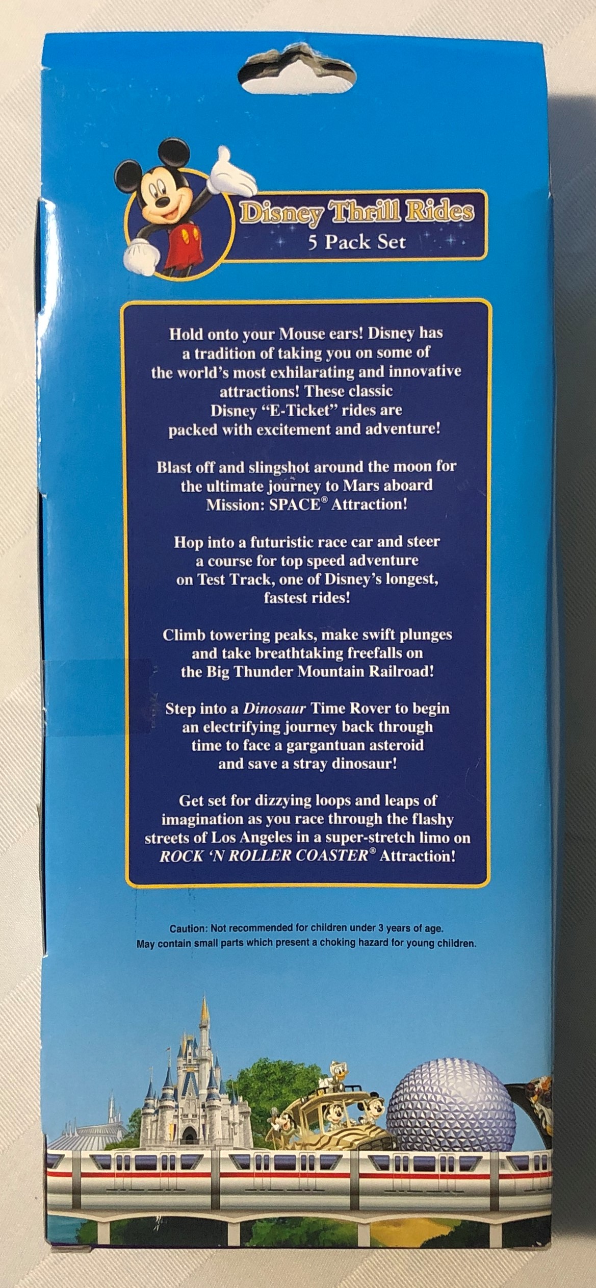 I’ve resisted the urge to open this piece of merchandise for years! I purchased it in Walt Disney World because I am fascinated with all forms of transportation. So when I saw how this set combined awesome attractions with awesome vehicles, I was handing my money to whoever would take it!