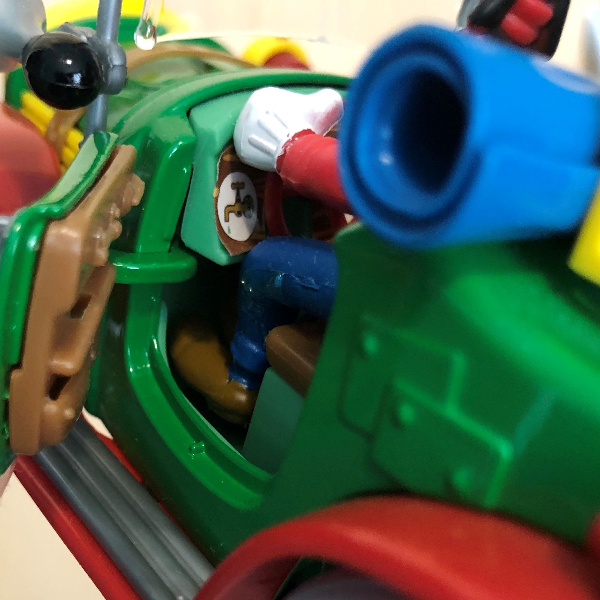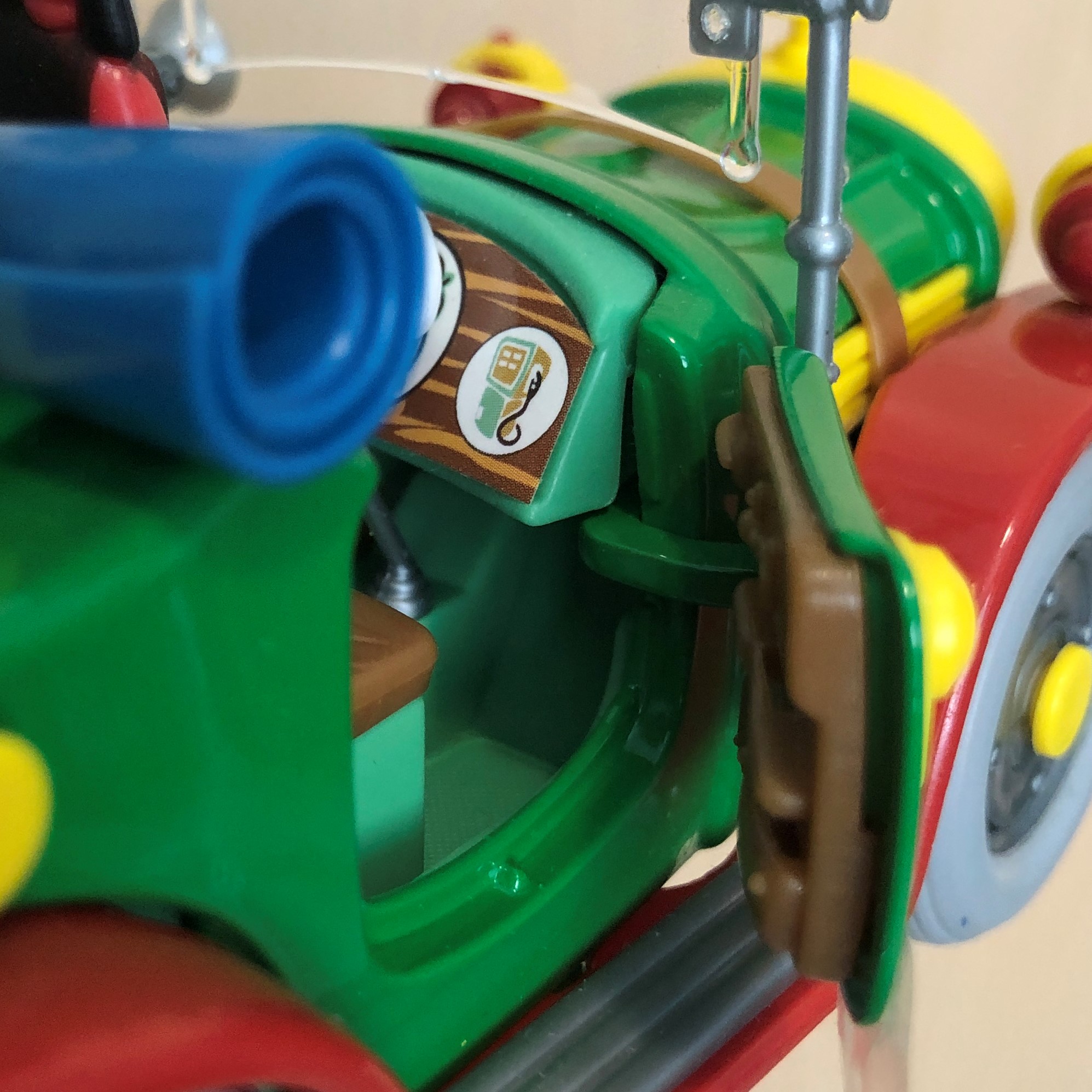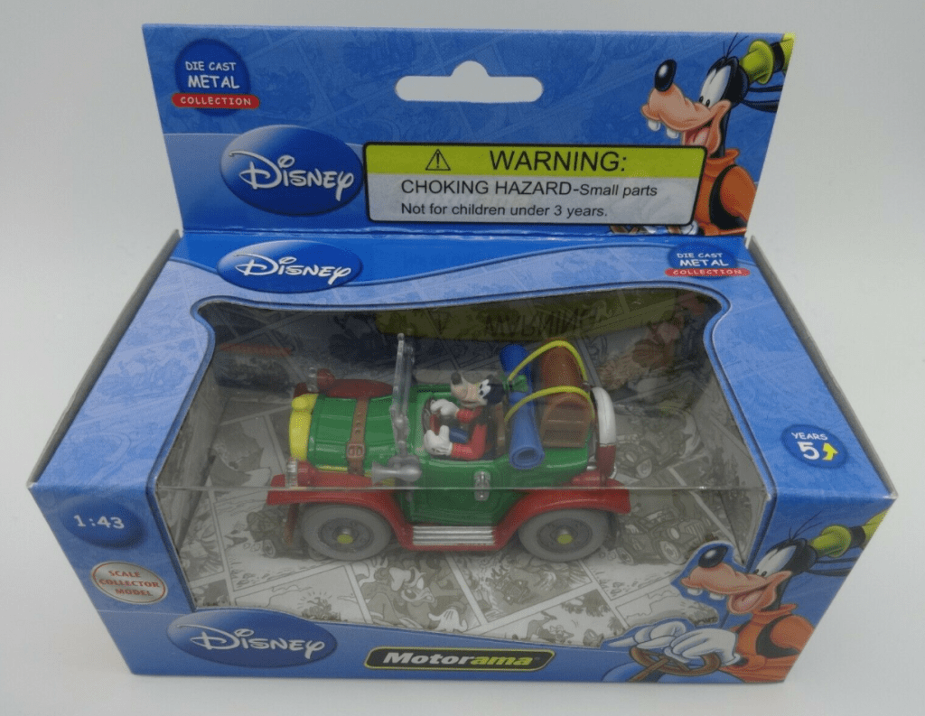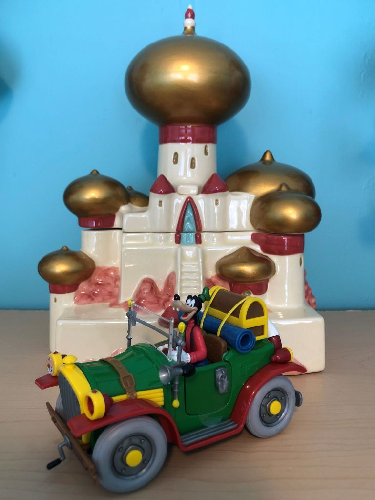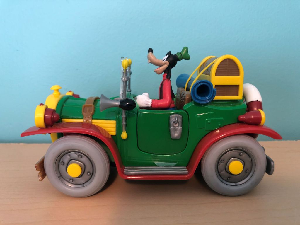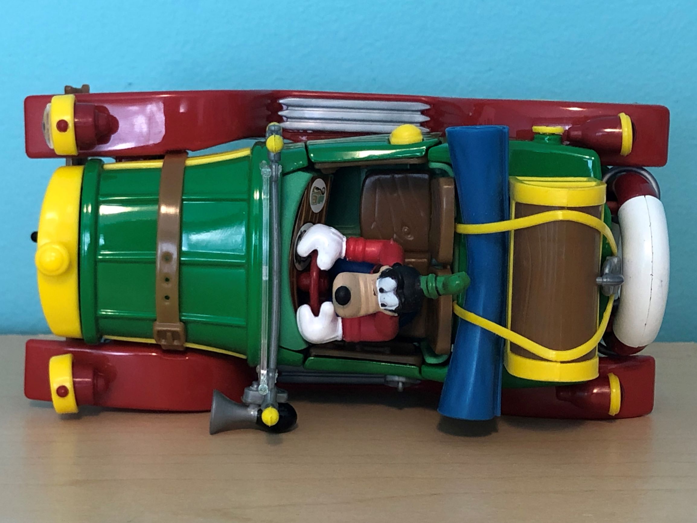 I just noticed when photographing this toy for the post that it is missing a headlight lens (Driver’s side). I’m going to say that Goofy lost it in some minor fender-bender somewhere in his travels. And is that a spare tire on the back or an inner tube for swimming? Maybe he was planning on visiting some of the beaches in Agrabah?