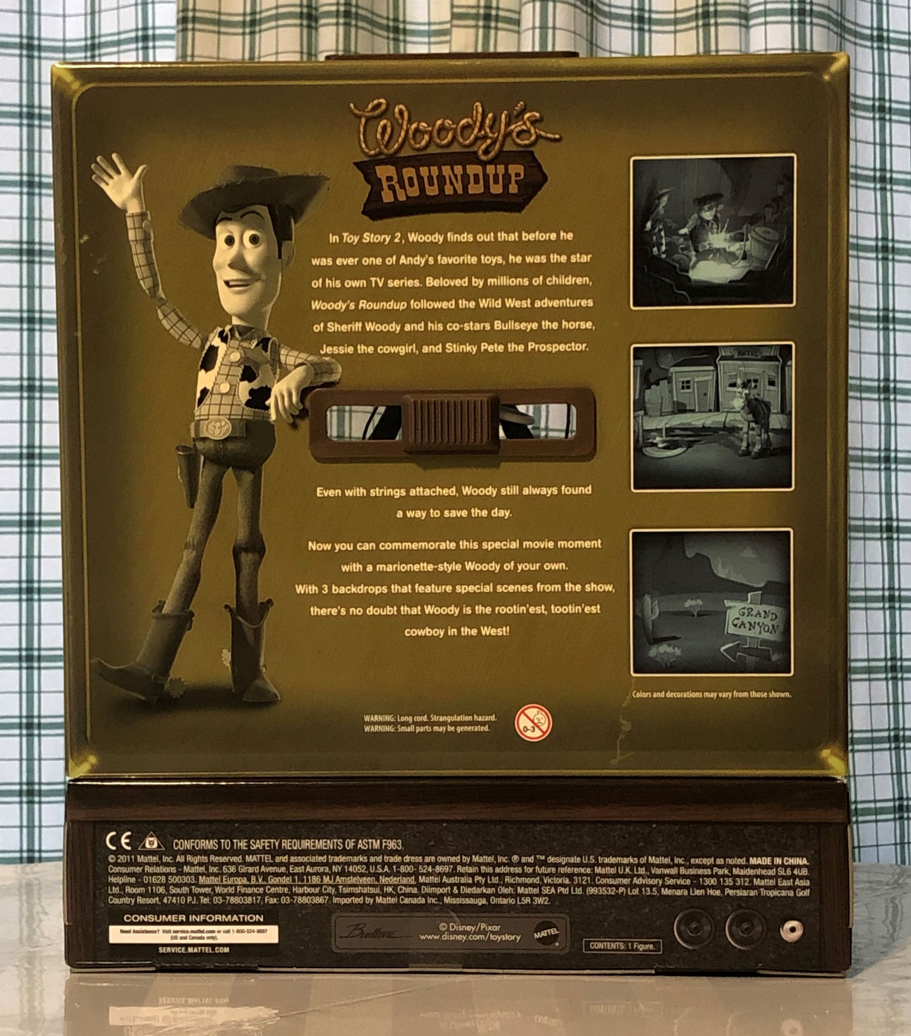 This wonderful collectible was released as an Exclusive from Mattel at the 2011 D23 Expo. It pays homage to the Toy Story 2 movie premise that Woody was actually a hero from the 1950s children’s television show called Woody’s Roundup. This show utilized marionettes to animate the characters and it was broadcast in glorious black and white!