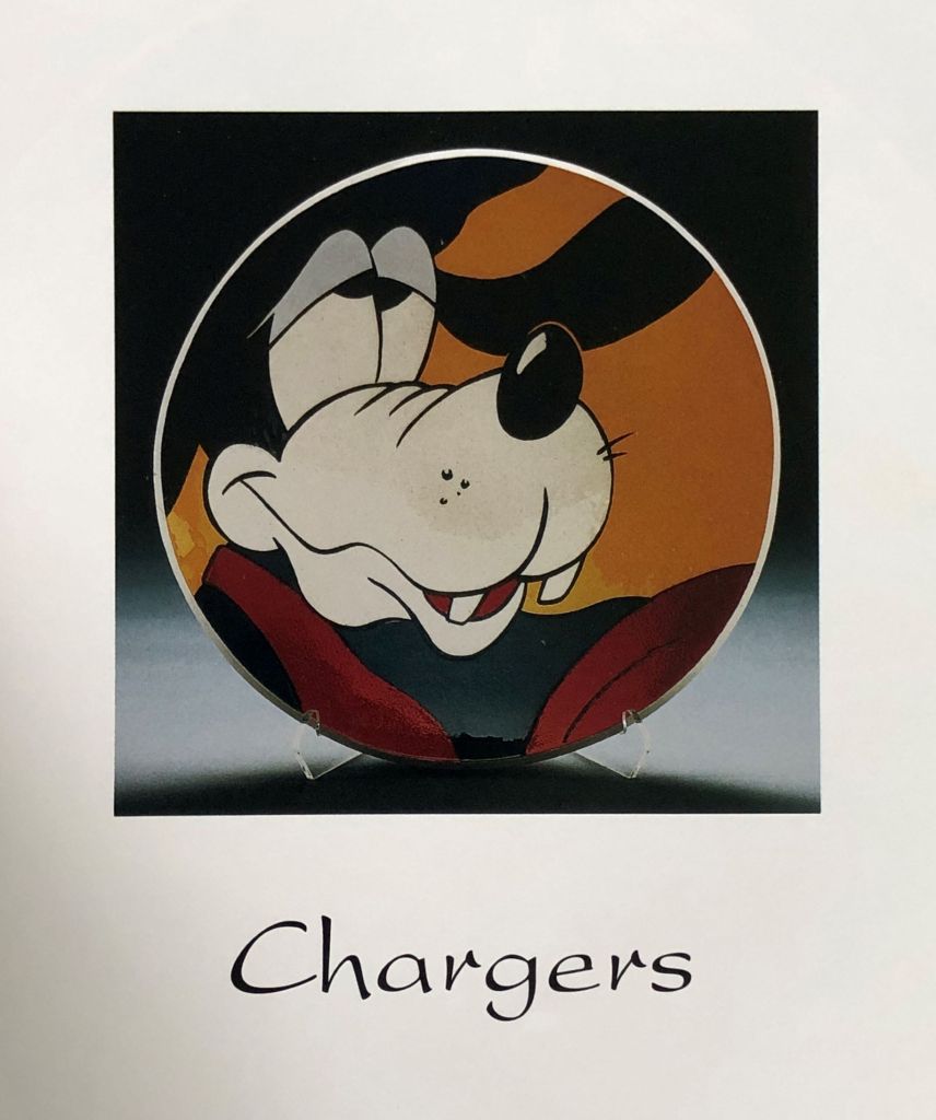 A Charger is a term used by a Decorator to describe a very large plate, often 18″ in diameter. So quite a bit larger than a standard collectors plate from the Bradford Exchange, for example.
