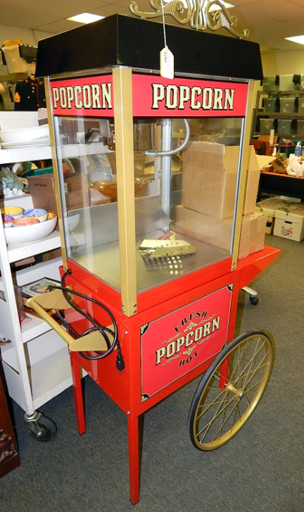 This popper is designed to look like a street vending machine. It even has little wheels and a handle that would enable a vendor to push the cart around to find customers. The wheels on this facsimile are only decorative, however, and don’t actually turn.
