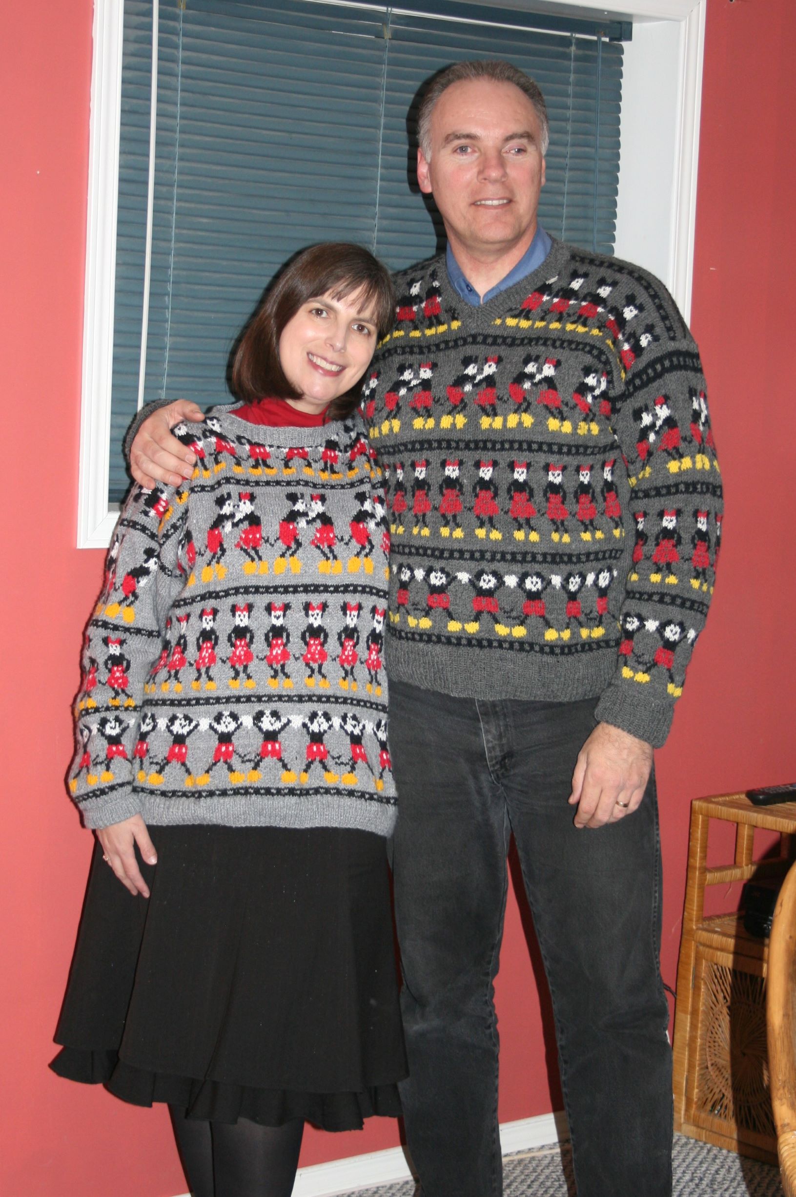 My mother is a very artistic woman. In the past, she wrote poetry (even publishing a compellation book called The Lady in Red, reviewed on this blog), painted, and even knitted up a storm! She knew my wife and I liked Disney and so began a lengthy project on our behalf: Large wool knit sweaters.