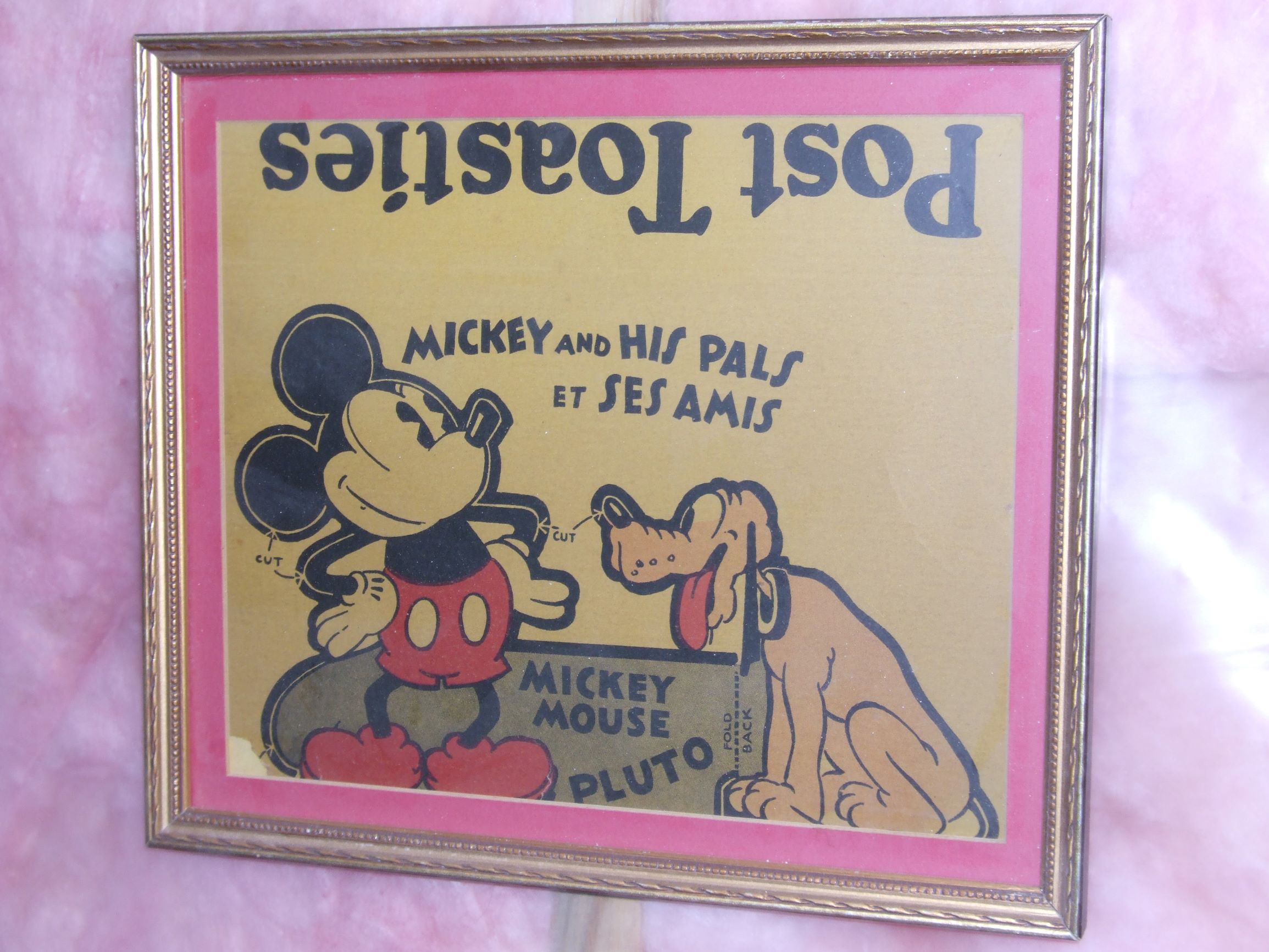 In the late 80’s, I owned and ran a small picture-framing store. One day a customer brought in a framed picture and asked me to redo the backing, matt, and glass, with an upgrade to acid-free products. I asked if she wanted the old backing and glass and she said ‘No’. Upon removing the old backing materials, I found among the layers this Post Toasties cereal box panel from the 1930’s!