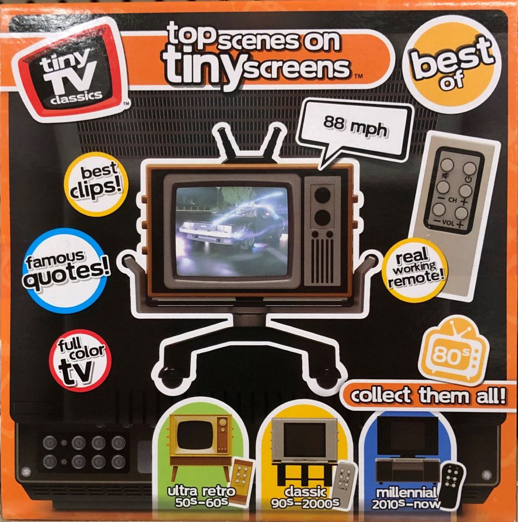 “Introducing Tiny TV Classics, the NEWEST collectible from Basic Fun!. Tiny TV Classics are real-working TVs that feature the most famous scenes and quotes from the most iconic shows and movies around. Each Tiny TV comes with a remote, that really works! That’s right! Use your remote to turn your Tiny TV on, sit back, and enjoy channel surfing from scene to scene! The laughs never STOP!“