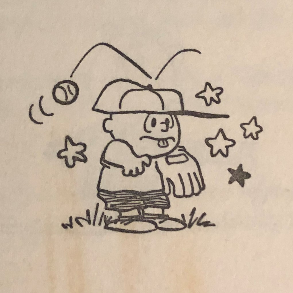 I think that’s good old Charlie Brown without his signature shirt. I’m sure of it, for who else catches a baseball with his head? Thumbnails abound in this volume and are worth the read for them alone.