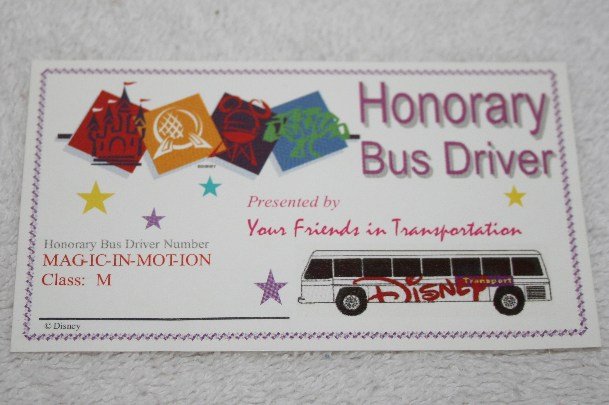 At Walt Disney World, sometimes the Drivers will give you an Honorary Bus Driver license. I’m not sure I’d like to drive such a large vehicle in Disney traffic!