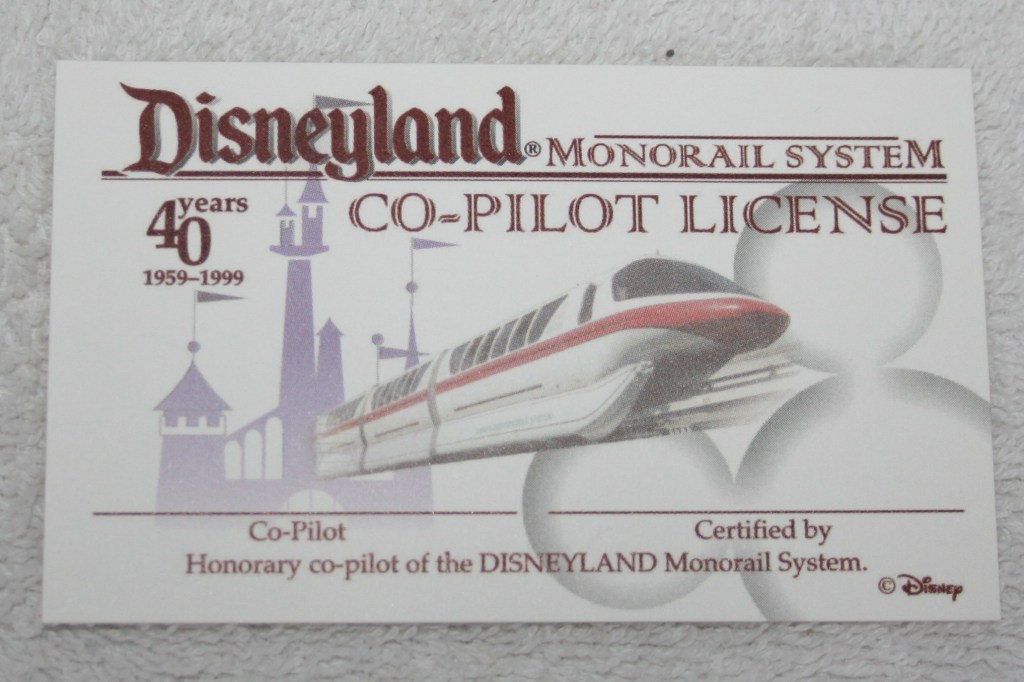 Starting with the smallest method of conveyance is my license to drive the Autopia cars at Disneyland. There are booths at the attraction that lets you print out a copy with your picture on it. I have one of these as well, but my thumbnail makes me look like an escaped convict, so I won’t be showing that version here!