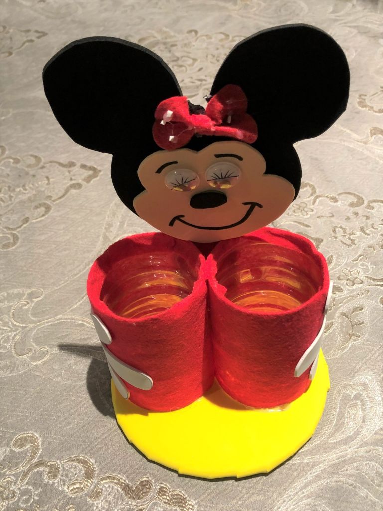 Minnie is all smiles as she hugs two receptacles. The likeness is very good and the colour scheme is on model.
