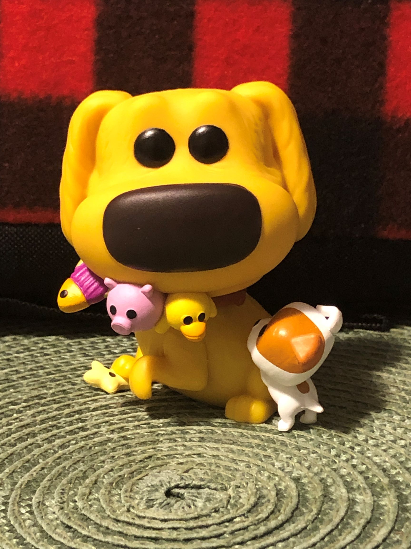 Eventually, Dug learns to share, and even gives the puppies a toy or two to take with them when they leave. But this vinyl figure depicts a moment when Dug was still hoping to keep his toys to himself. Hang onto that moment, Dug!