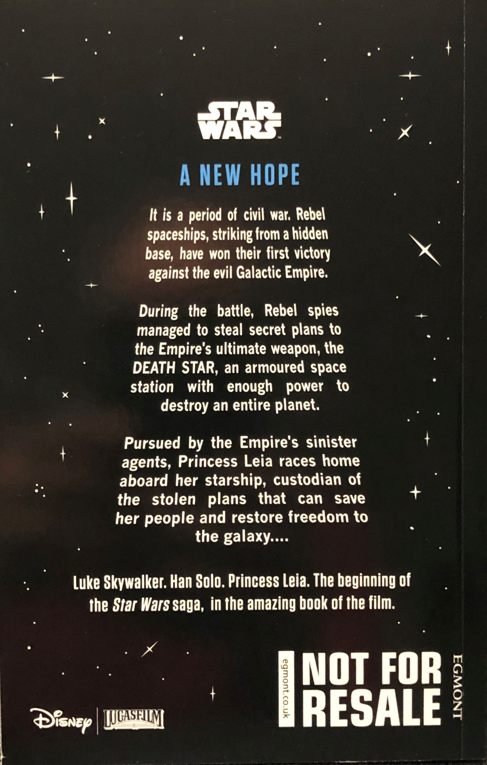 First is a nice and simplified novelization of the original movie, A New Hope, by Ryder Windham. On the back cover you can clearly see that this novel was not released to book stores for sale, but only with this collectible.