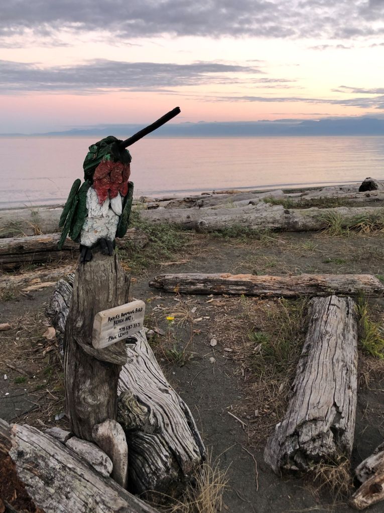Royal Beach is on Vancouver Island just 20 minutes outside of Victoria., BC. It is being developed as a destination for seaside living. To entice buyers there is a very nice beach area with wonderful driftwood sculptures.