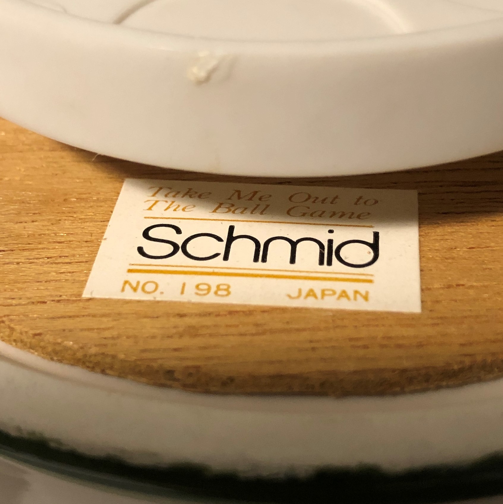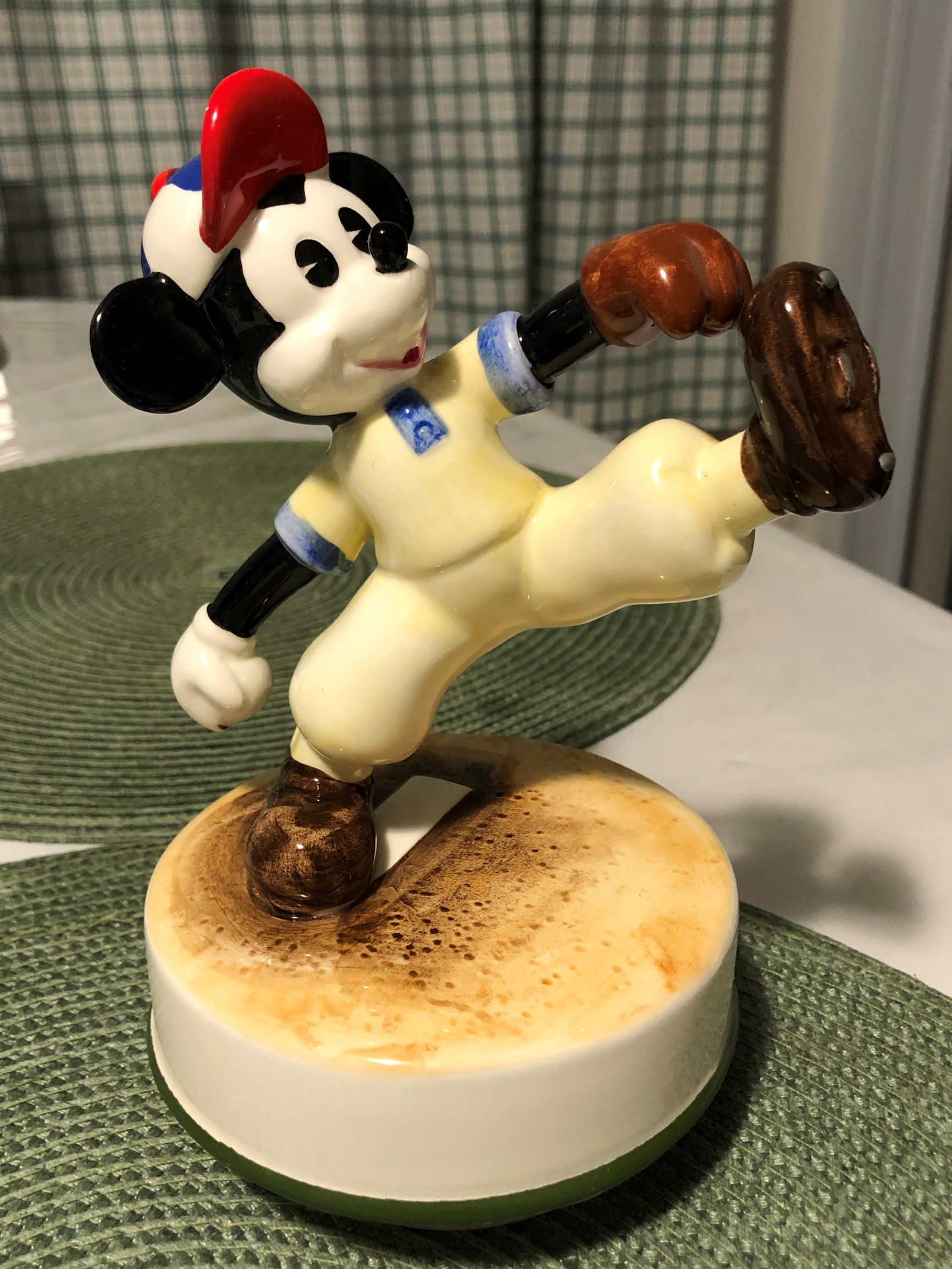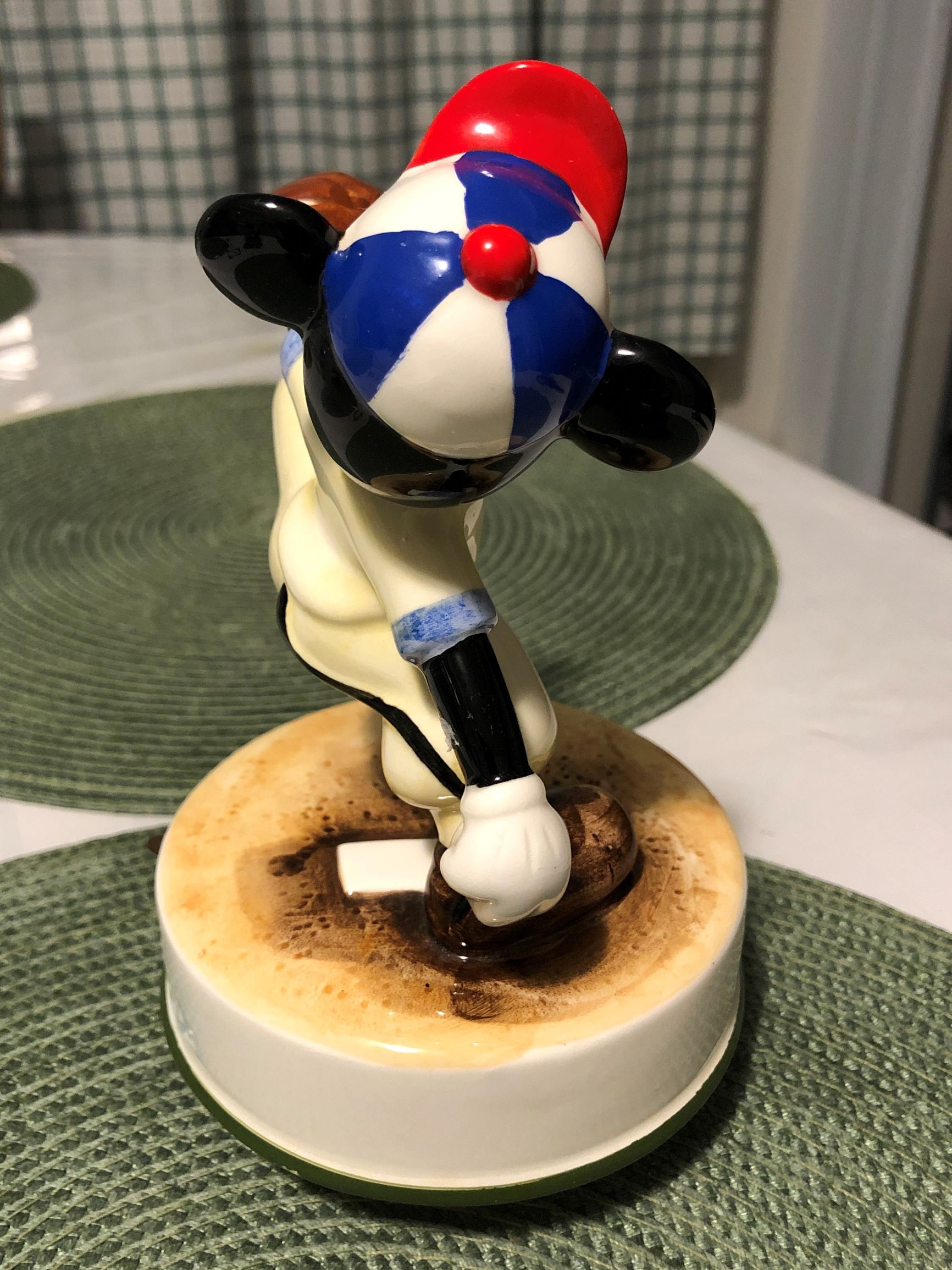 Schmid consistently does a great job with these ceramic musical figurines. You wind up the plastic disc underneath and flick the switch to watch the figure turn to a relevant tune. In this case, as you may have guessed, that tune is Take Me Out to the Ball Game.