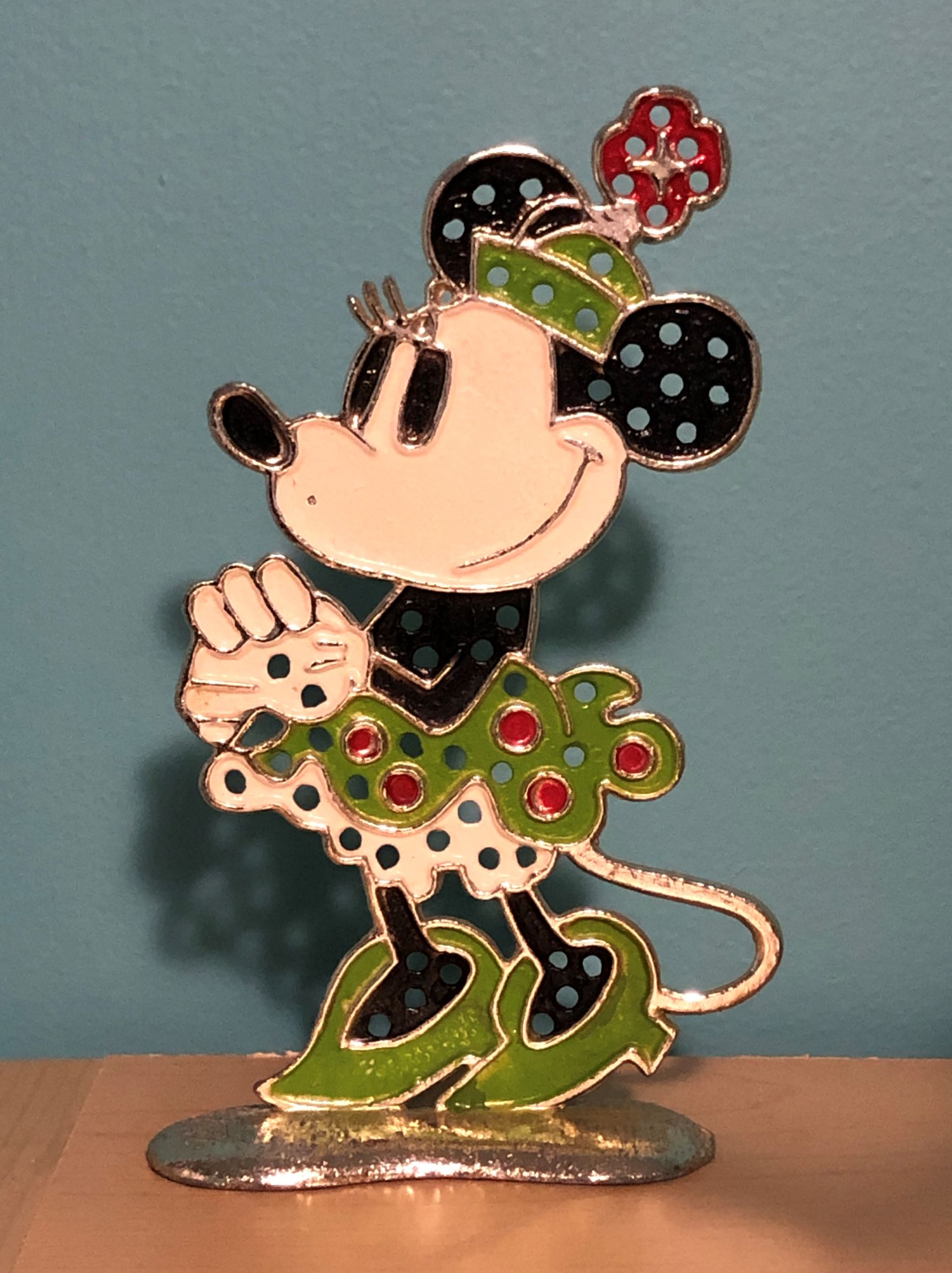 Minnie looks happy enough though, so no harm no foul. Sporting her vintage look with polka dot skirt and that iconic flower hat, she is stylin’ as she guards your best costume jewellery.