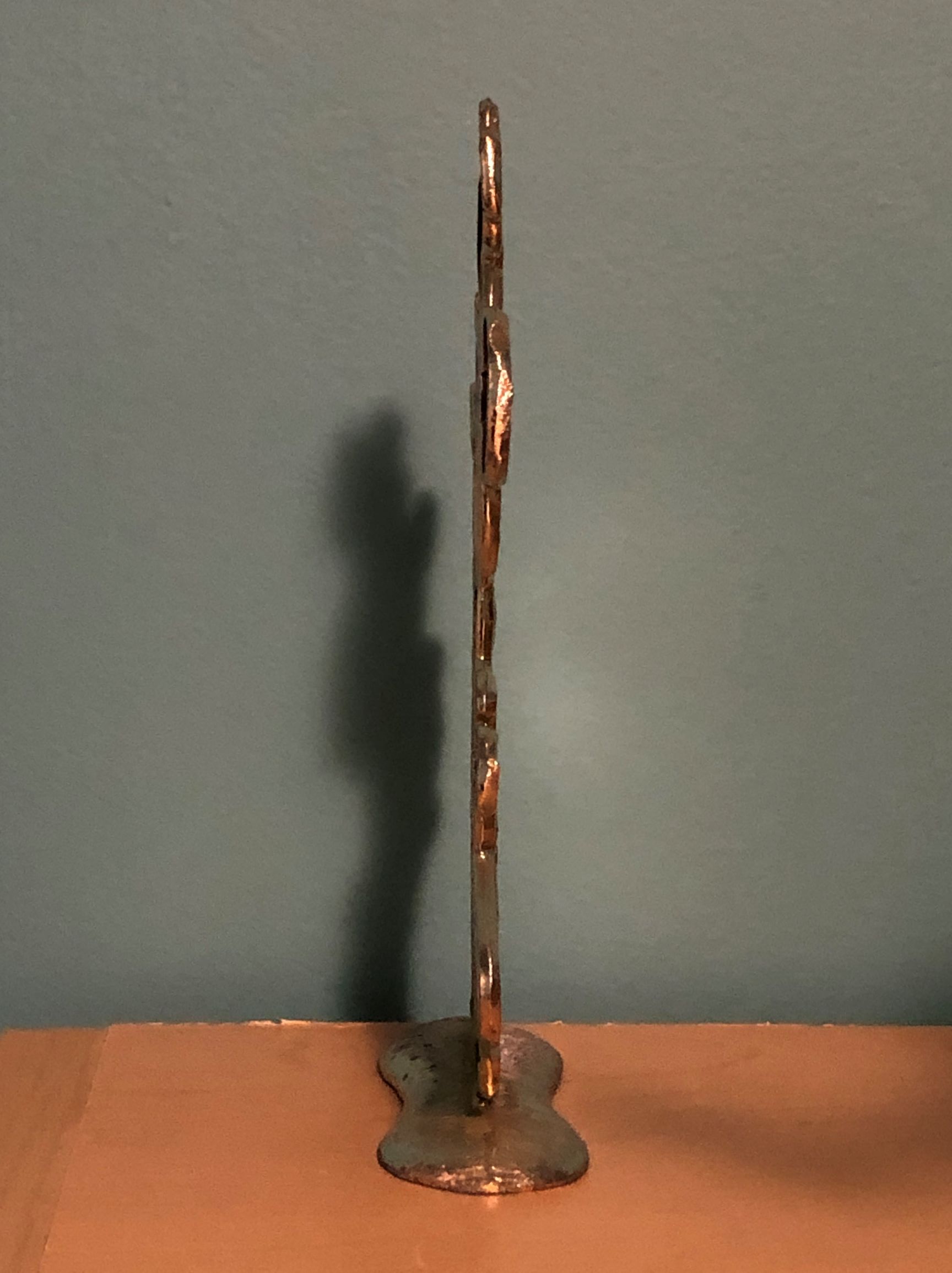 This pewter (?) or stainless steel piece is painted only on one side. And if you turn it sideways, it almost disappears!