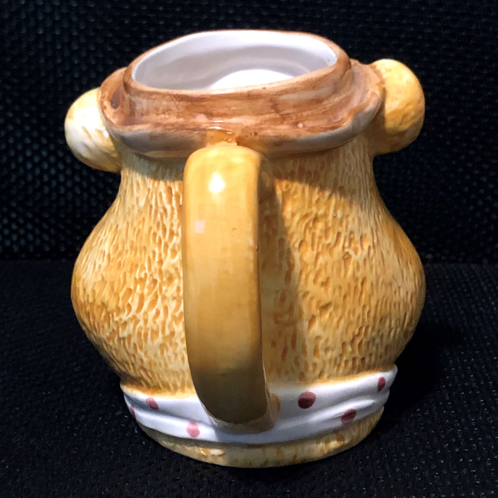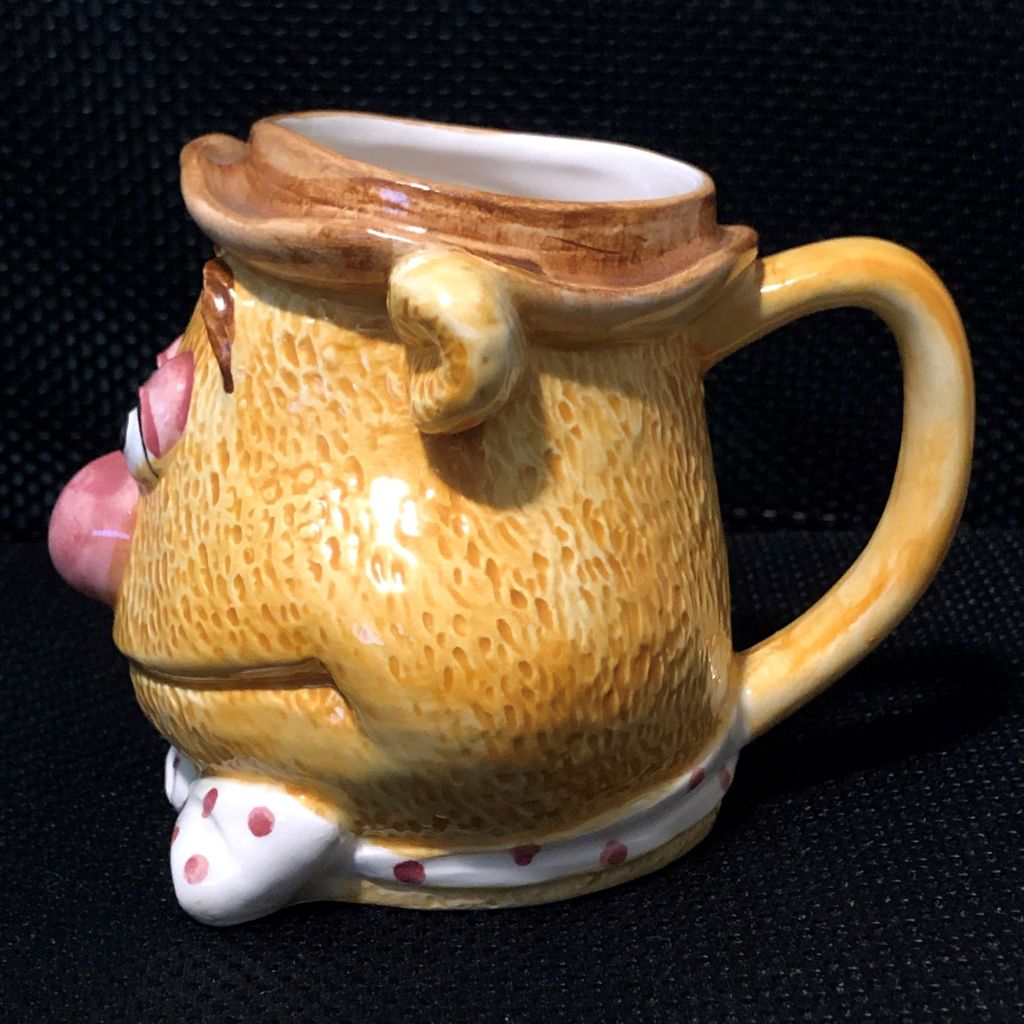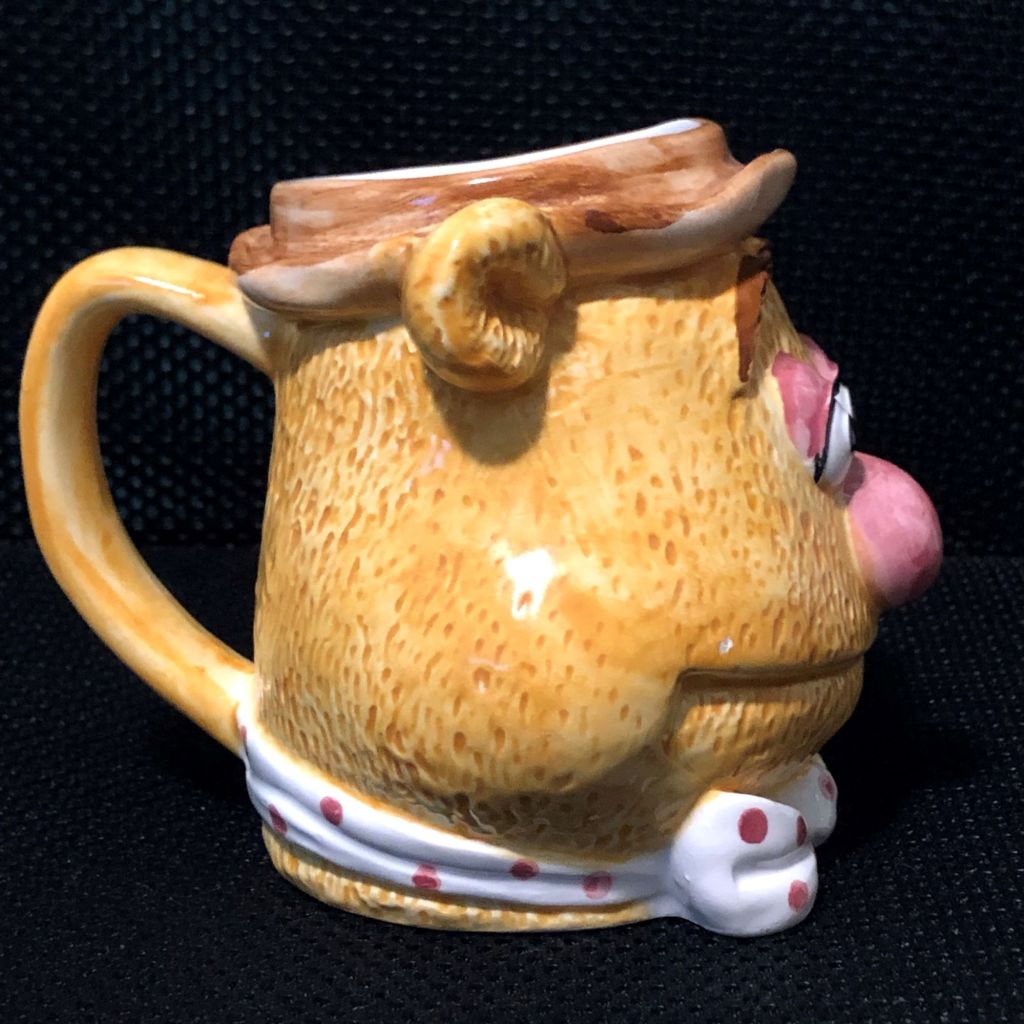 This mug has a higher level of detail than mugs released later. His fur really stands out and the expression on his face is happy and inviting. His signature Porkpie Hat and polka dot bowtie are also well rendered.