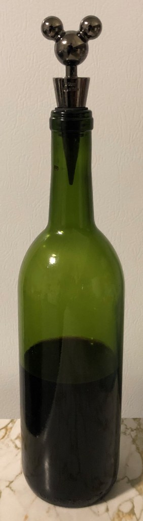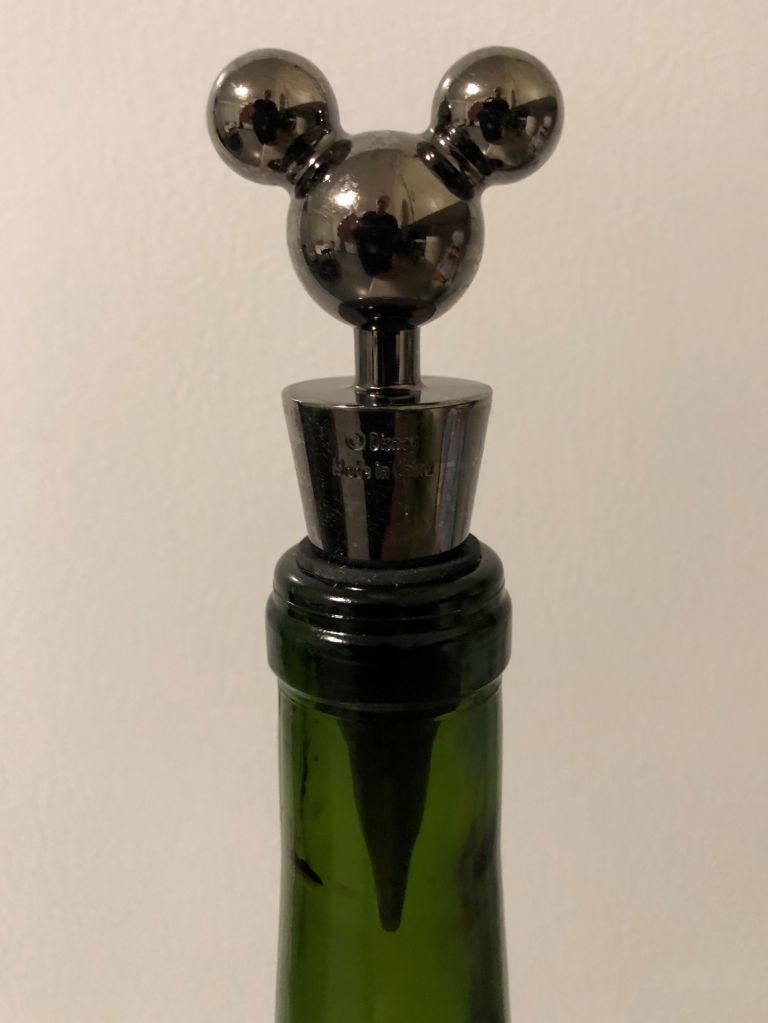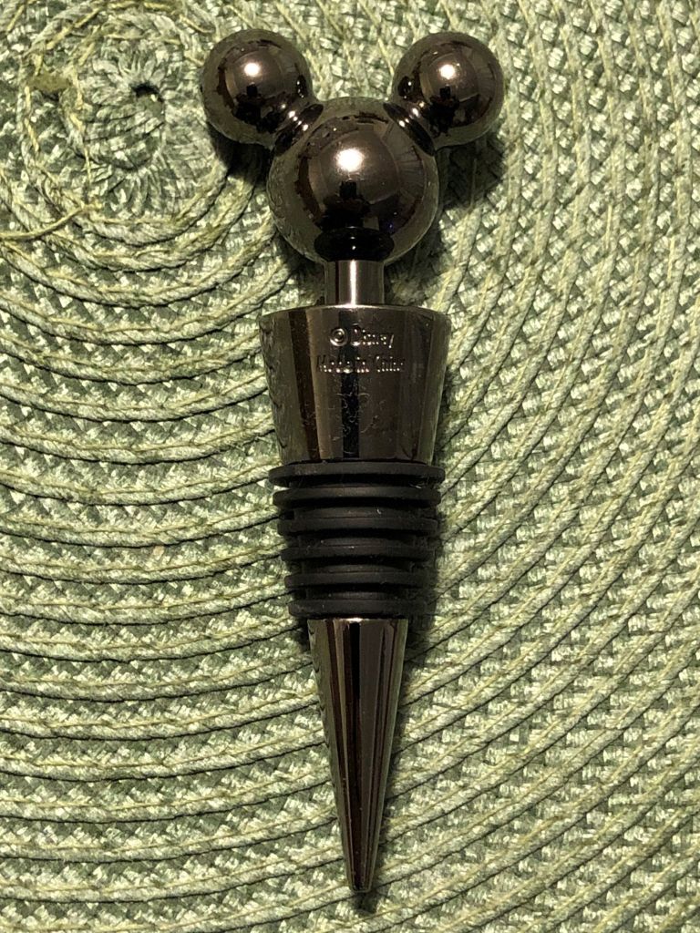 This is a solid metal stopper with the Hidden Mickey motif prominently in evidence. The rubber rings fit snuggly into any size of bottle neck.