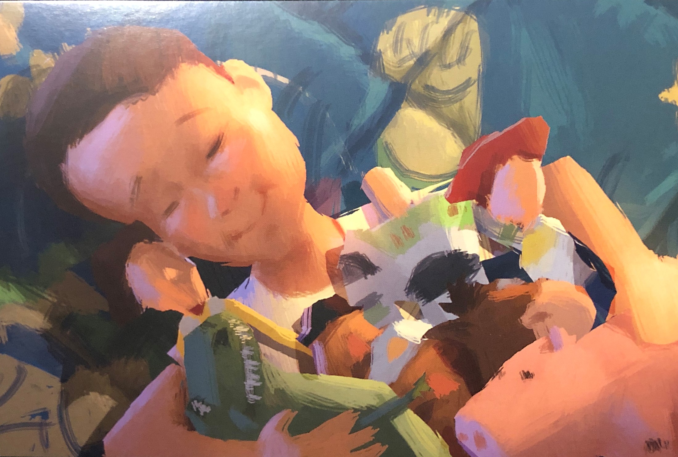 As we come to the close of another post, I hope you all feel as warm and fuzzy as Andy does as he snuggles in for an afternoon nap with his friends! Now that’s a concept. Art.