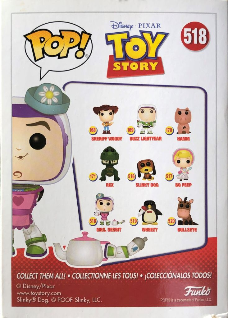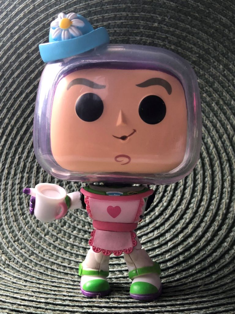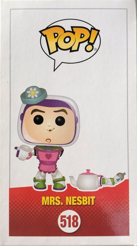Just when I think there couldn’t possibly be another Funko Pop! that I’d have to own, one just jumps off the shelf at me and yells “BUY ME!” And I do. Mrs. Nesbit is a funny version of the Buzz Lightyear character that appeared for a short cameo in the original Toy Story film. His/her claim to fame? Helping us all realize that a person can get drunk… on tea!