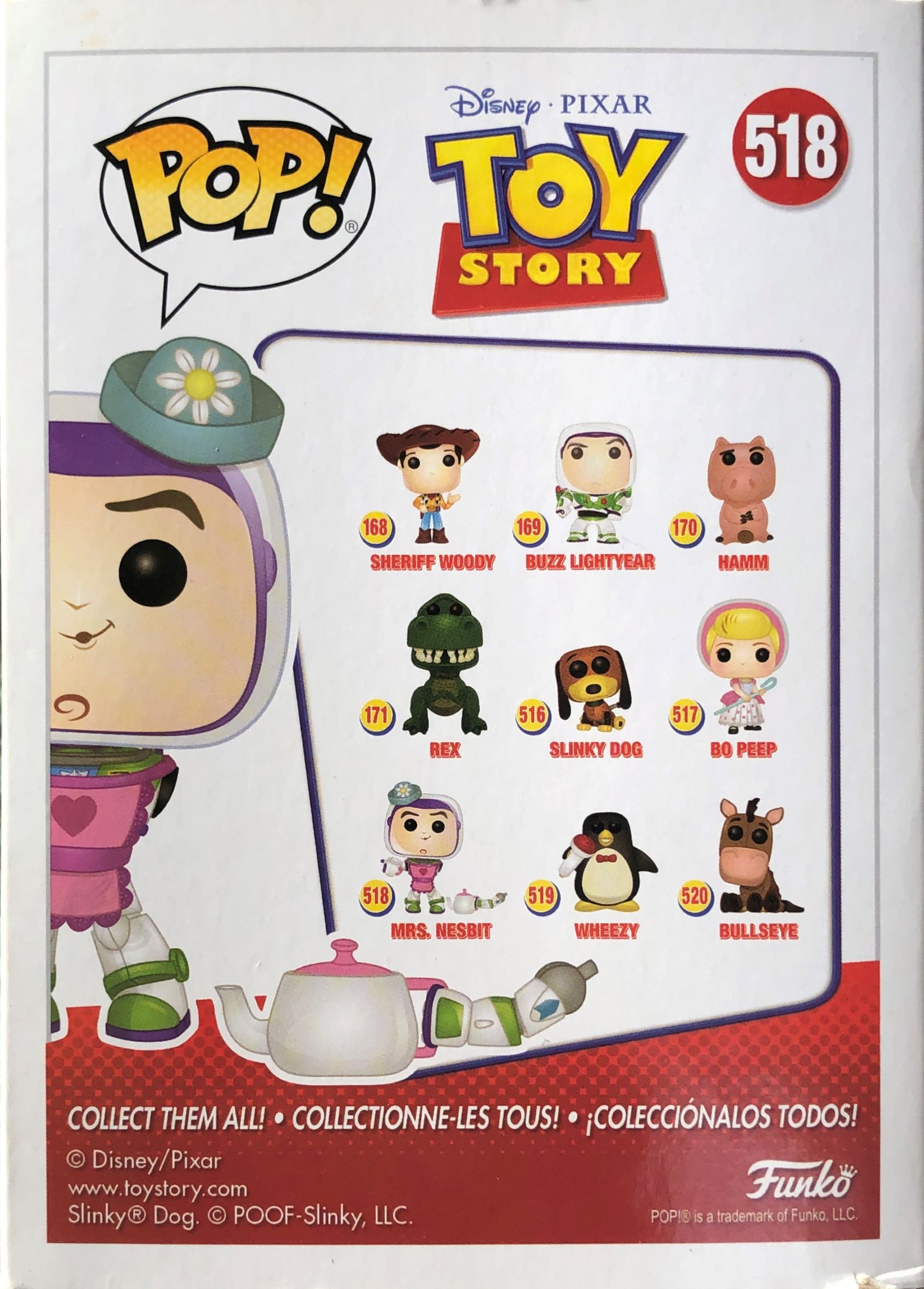 Just when I think there couldn’t possibly be another Funko Pop! that I’d have to own, one just jumps off the shelf at me and yells “BUY ME!” And I do. Mrs. Nesbit is a funny version of the Buzz Lightyear character that appeared for a short cameo in the original Toy Story film. His/her claim to fame? Helping us all realize that a person can get drunk… on tea!