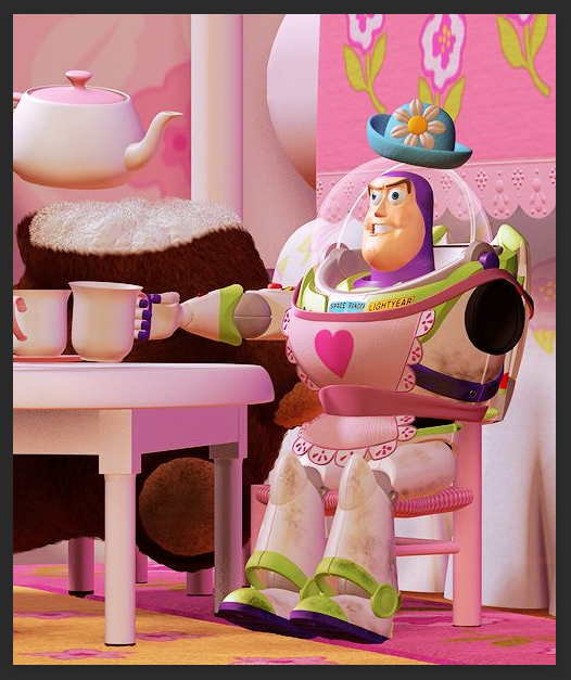 This version of Buzz is perhaps even funnier than Delusional Buzz (see Toy Story 2) or Spanish Buzz (see Toy Story 3). I can only imagine how much fun Tim Allen had voicing this segment!