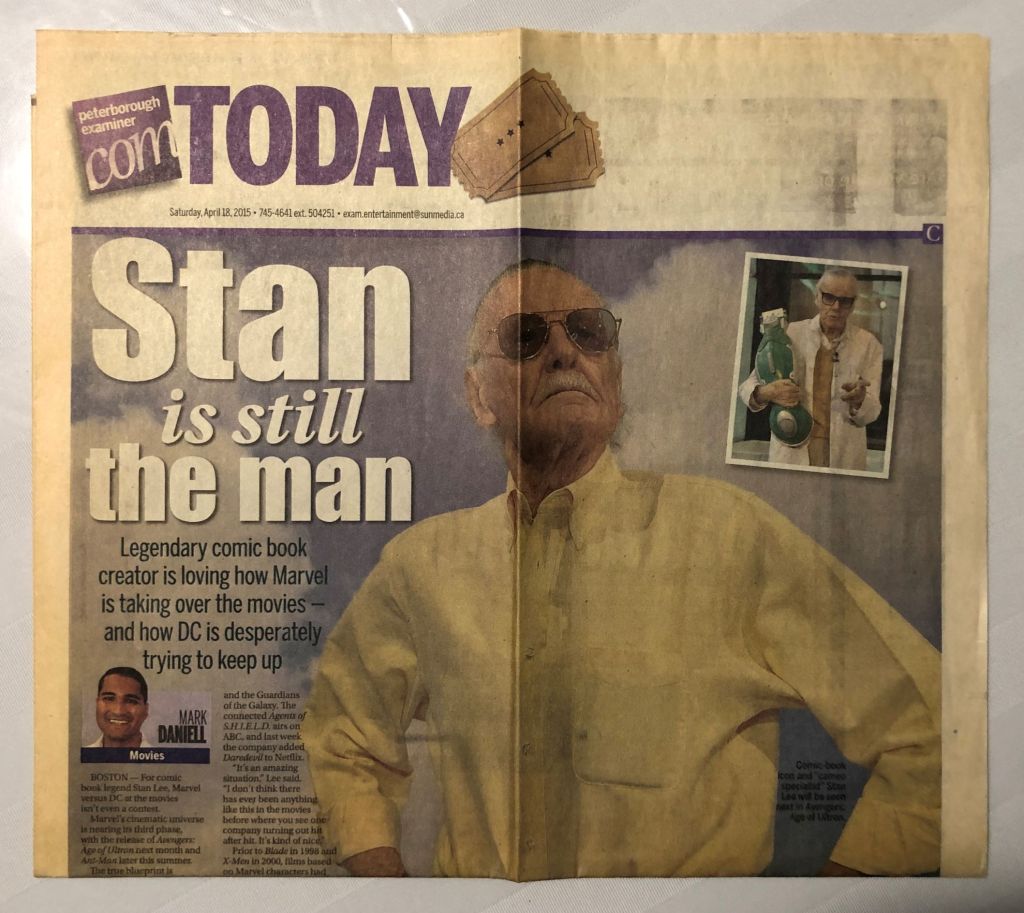 ‘Stan the Man’. There could be only one man on the planet who deserves that nickname, and that’s the legendary Stan Lee! Of course, he could also be called ‘Captain Cameo’, but that’s for another article. The article in this post was found in the Peterborough Examiner of Saturday, April 18th, 2015.
