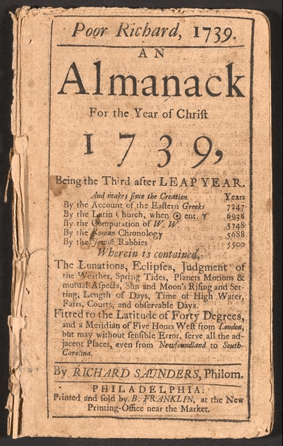 FUN FACTS: Franklin adopted the pseudonym of “Poor Richard” or “Richard Saunders” when publishing his almanack.