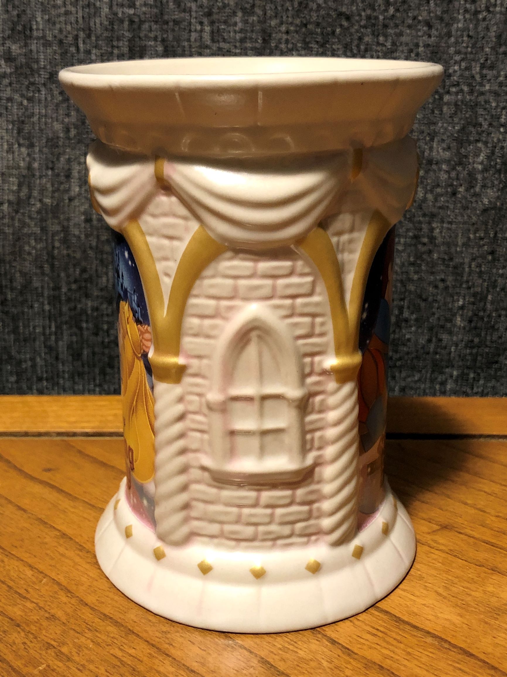 Kudos to the Disney Store for commissioning this mug with castle motifs sculpted all around the ‘sides’. The ‘gold’ trimming is a nice touch as well.