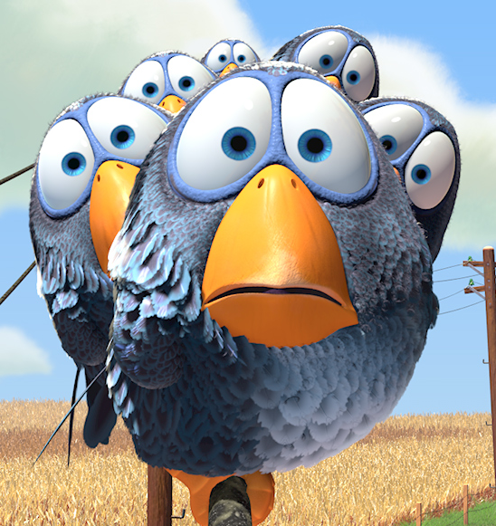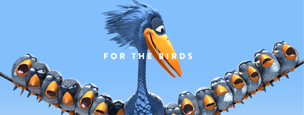 For the Birds opens as one by one, a flock of small birds perch on a telephone wire. Sitting close together has problems enough, but then along comes a large dopey bird that tries to join them. The birds of a feather can’t help but make fun of him—and their clique mentality proves embarrassing in the end.