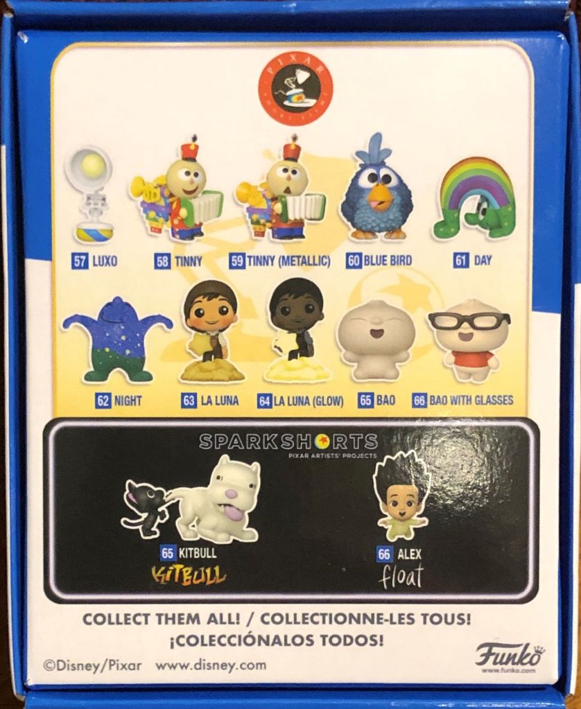 The boxes are hard gloss cardboard with a clear window to display the character. They have nice graphics on each side with a full listing of the available characters on the back. This series is from the Pixar Shorts with two figures being from the Sparks Shorts that are presently showing on Disney+.