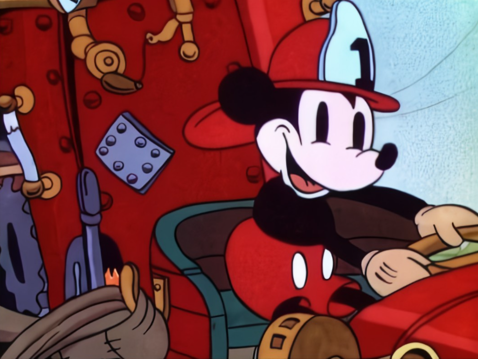 Mickey’s Fire Brigade is a color Mickey Mouse short released in 1935. Mickey, Donald, and Goofy are firefighters who must rescue Clarabelle Cow from a burning building without interrupting her bath. And of course, they do a great job. (Pause for sarcasm to sink in) No. No they don’t!